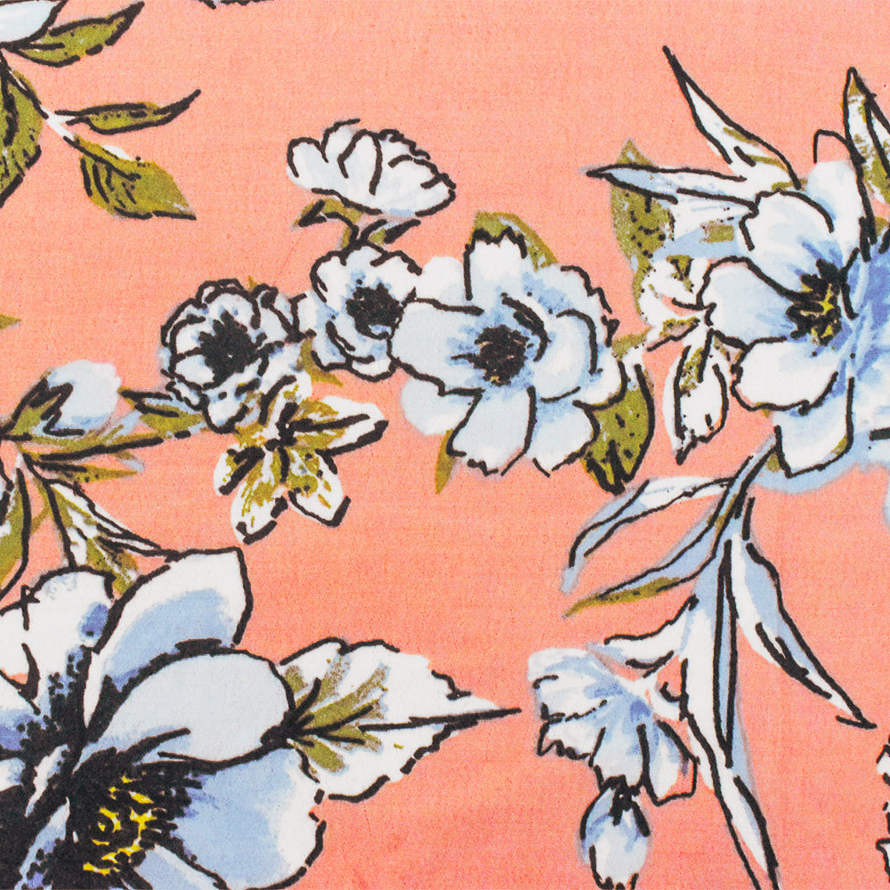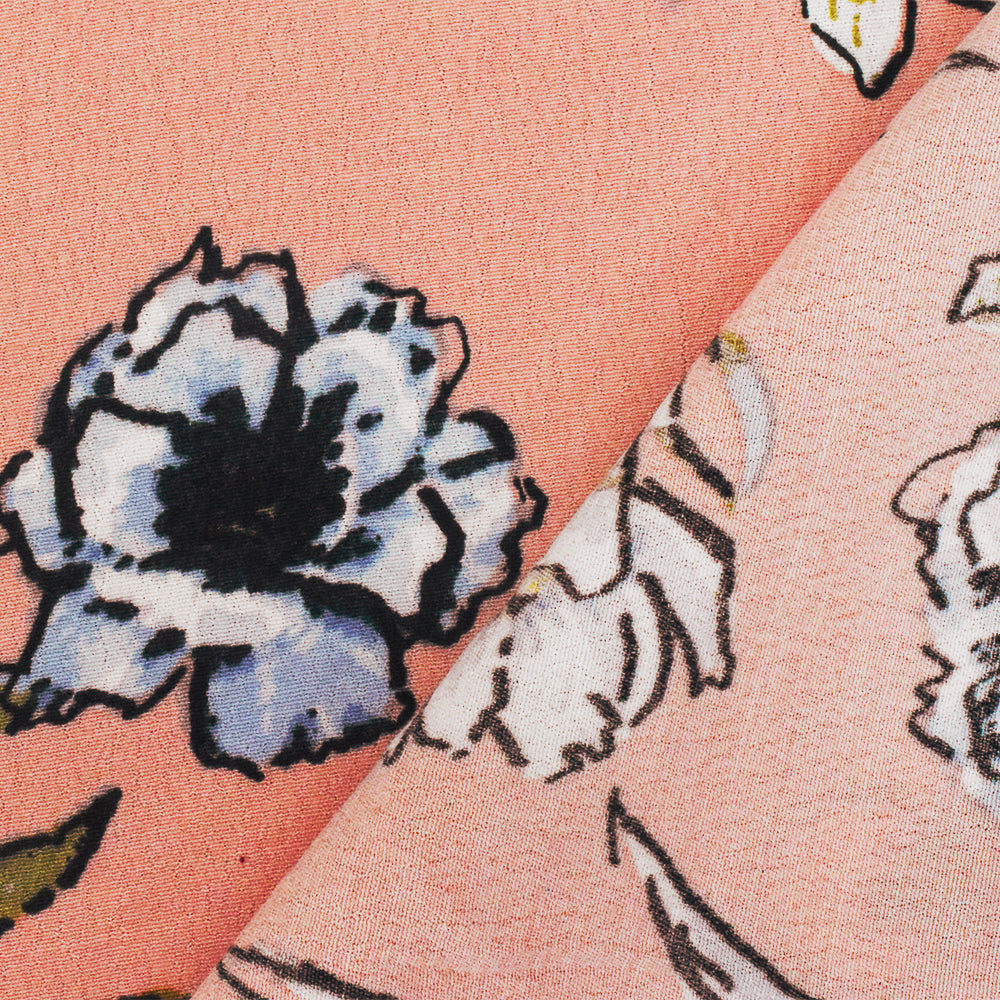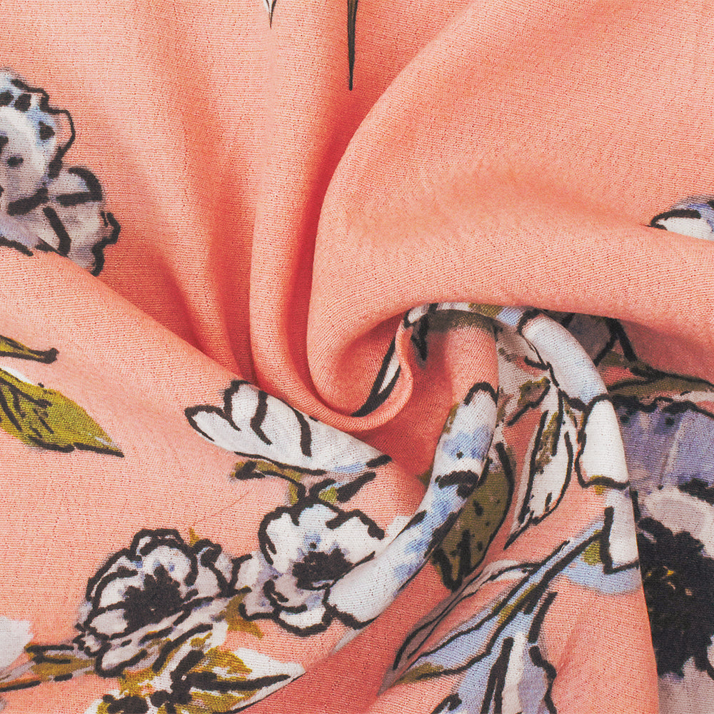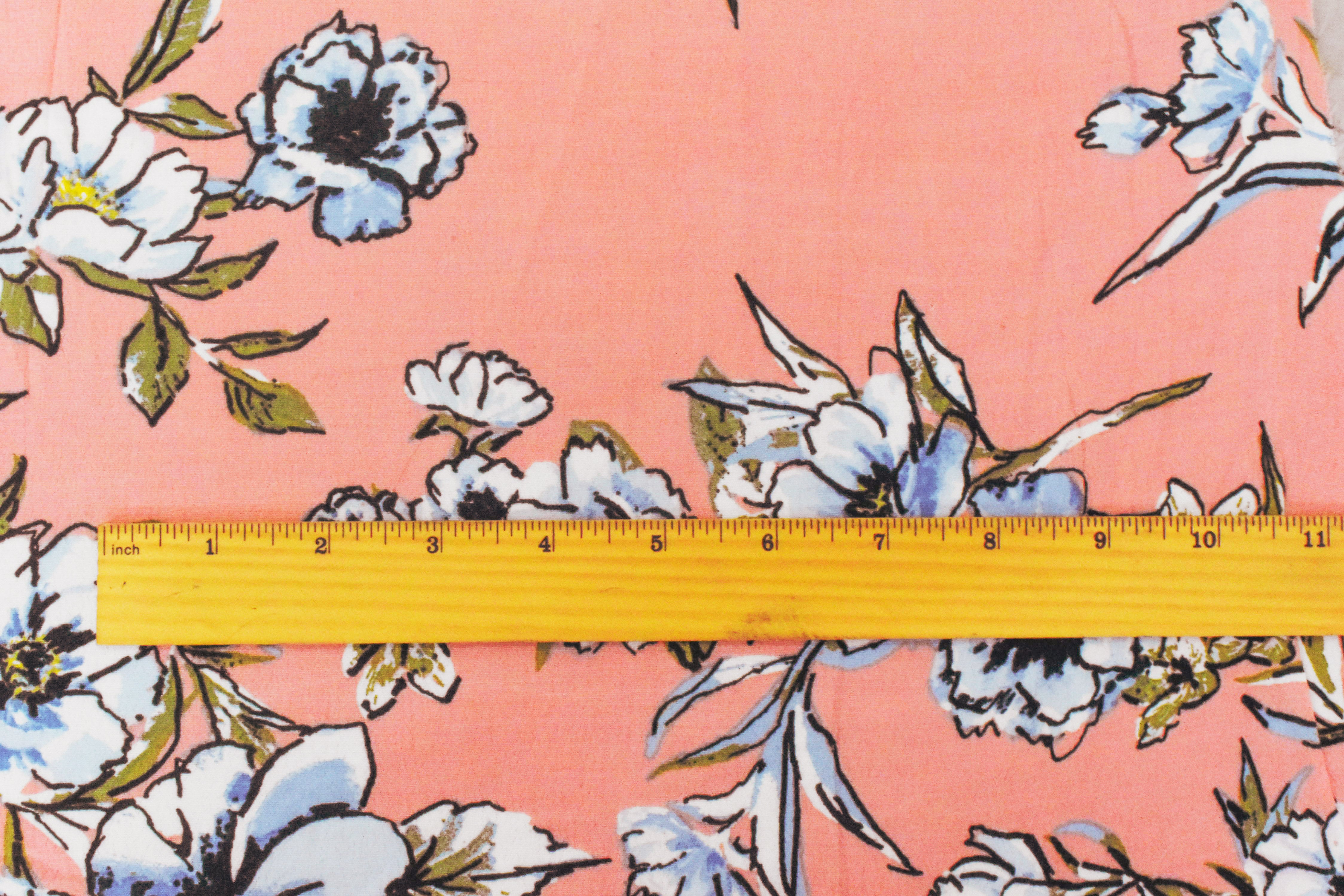 Pink-Blue-Multi Floral Printed Poly Crepe Faille Woven Fabric