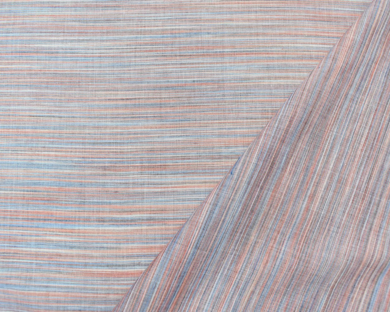 Blue-Orange-Multi Cotton Famous Maker Slub Horizontal Stripe Woven Fabric