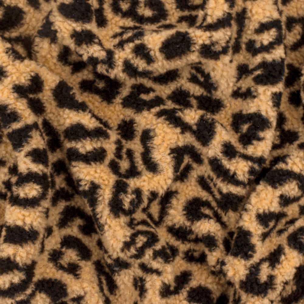 Beige-Black Famous Maker Leopard Sherpa Fleece Fabric