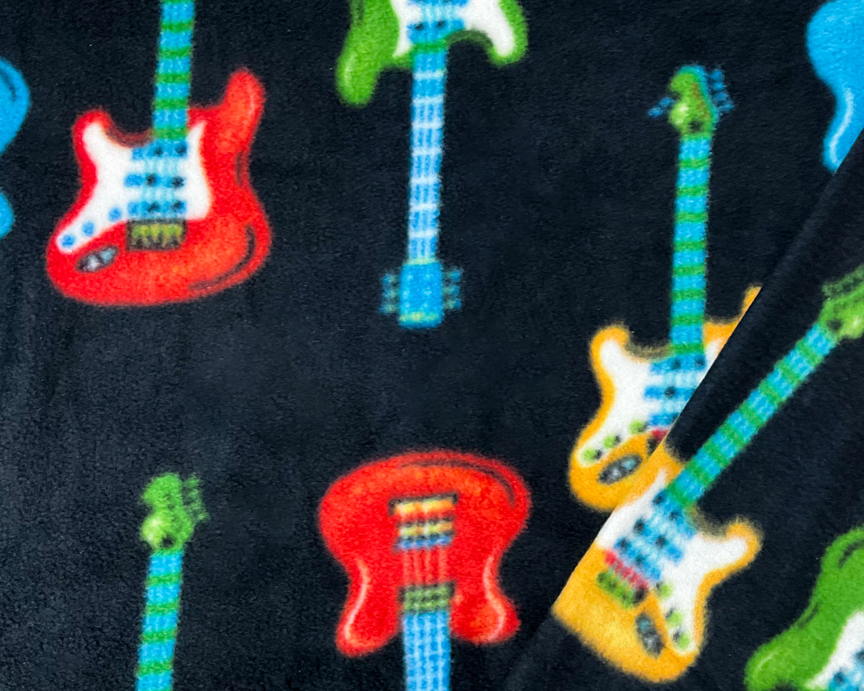 Black-Multi Polyester Guitar Printed Polar Fleece Knit Fabric