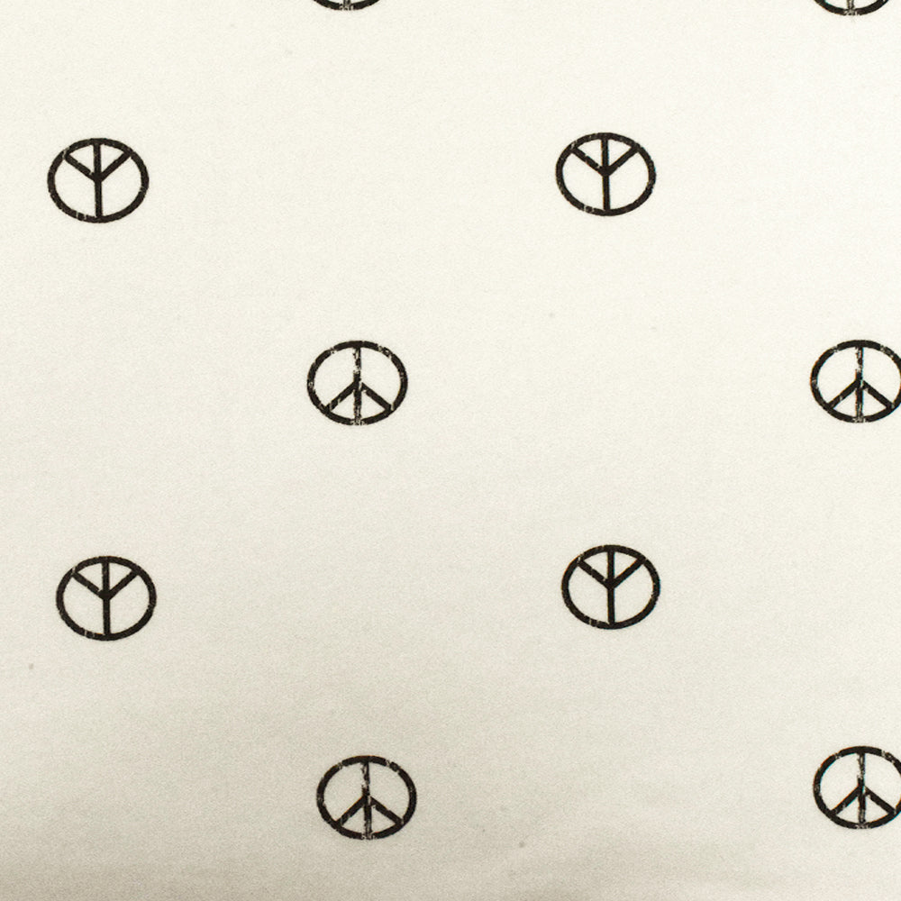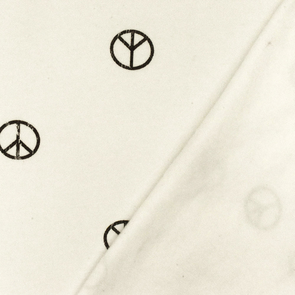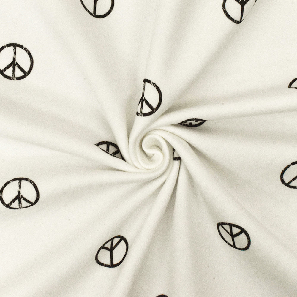 -Peace sign printed on a stretch cotton-poly brushed terry fleece knit fabric