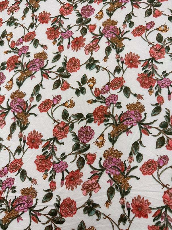 1 7/8 YD PC-Ivory Floral Double Brushed Jersey Knit Fabric