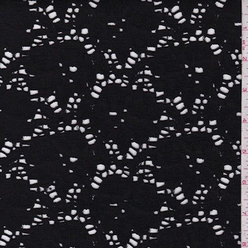 1 YD PC-Black Floral Eyelet Double Knit Fabric