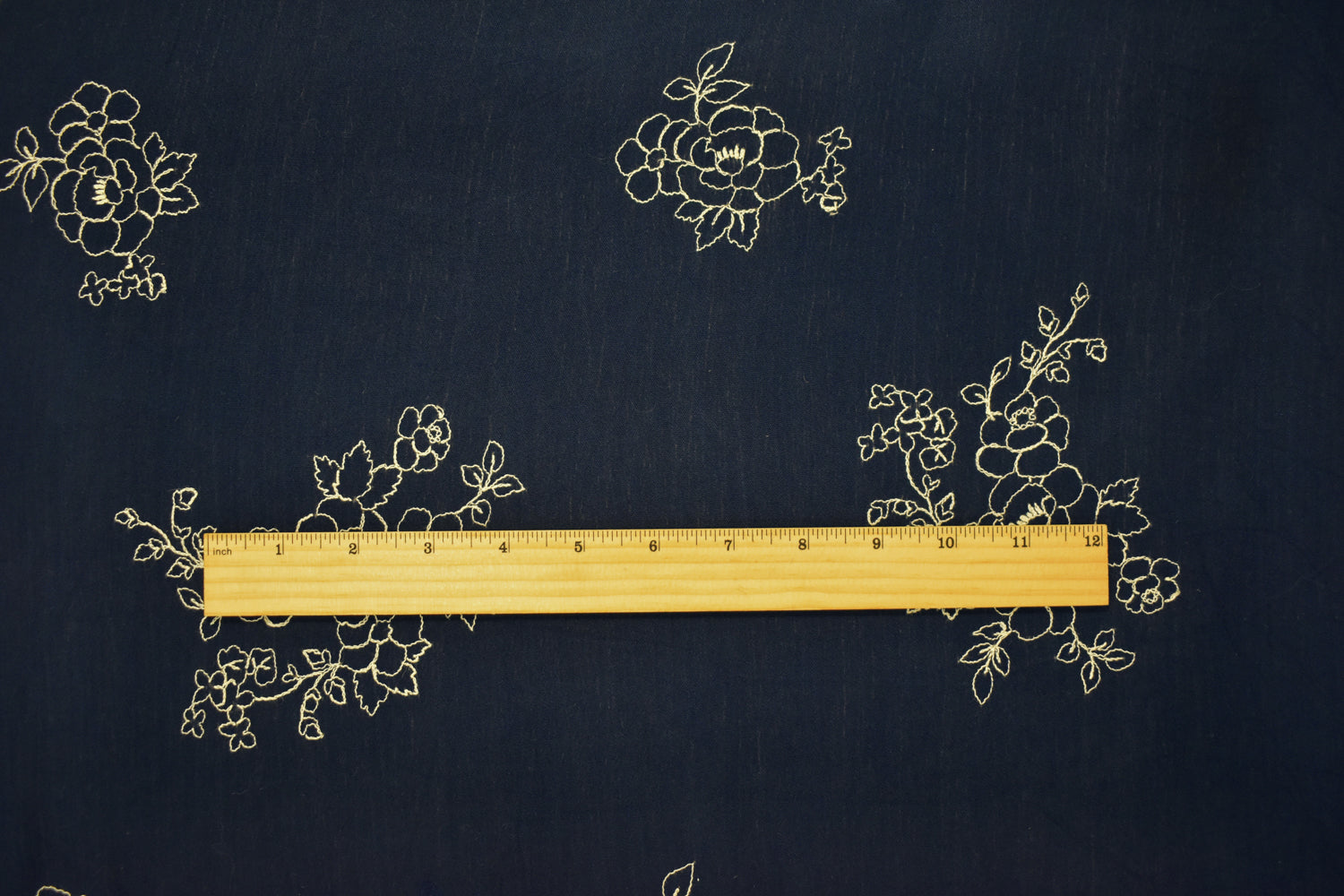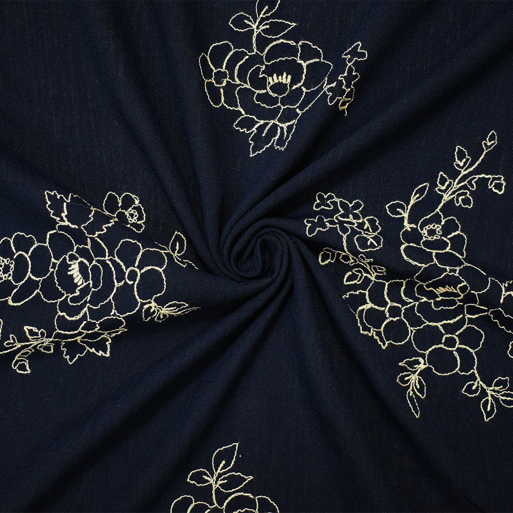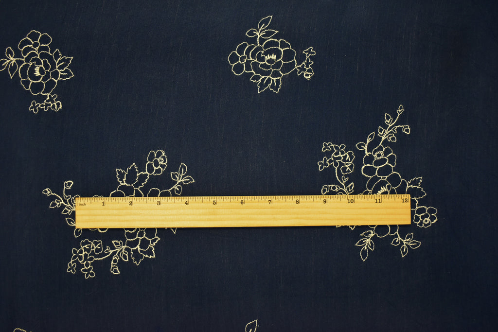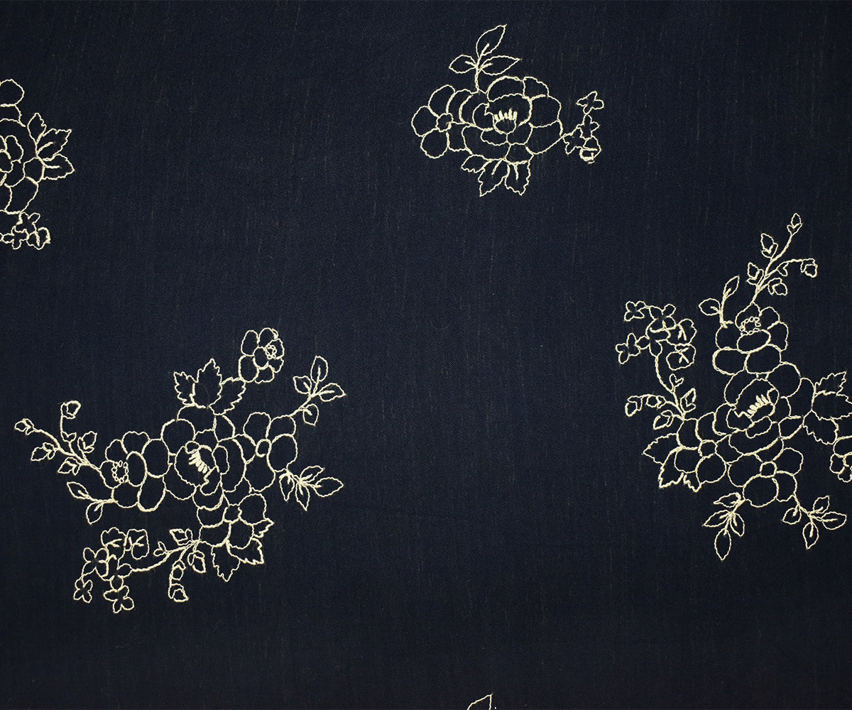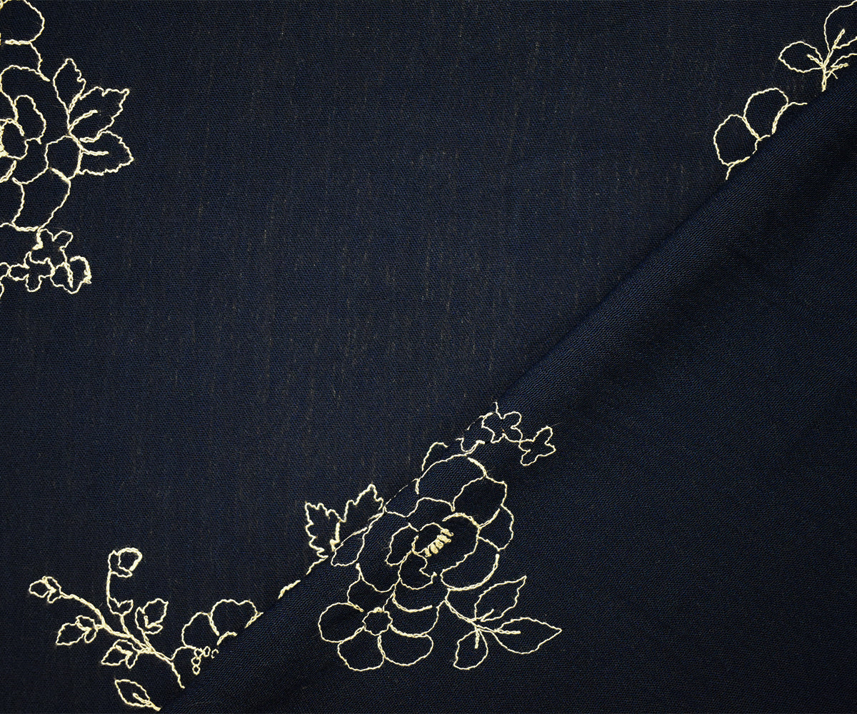 1 YD PC-Navy Blue-Ivory Cotton Floral Embroidered Gauze Woven Fabric