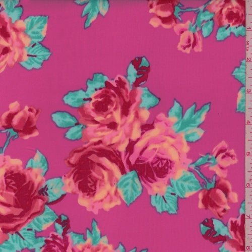 2 YD PC-Hot Pink Rose Cluster Techno Scuba Knit Fabric