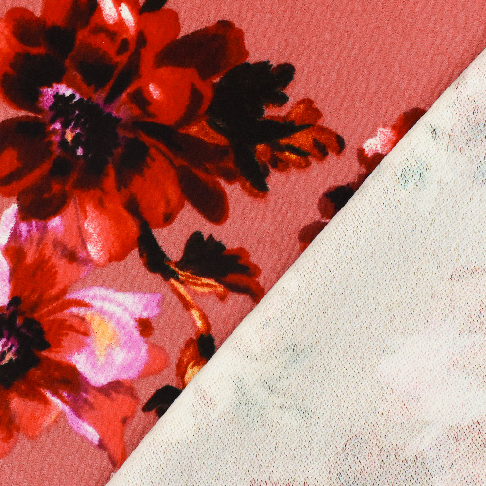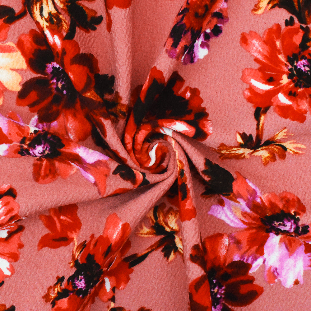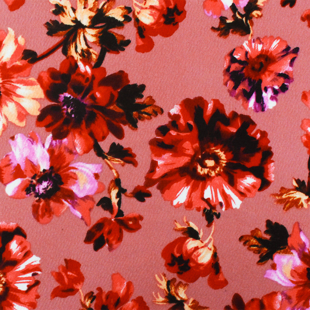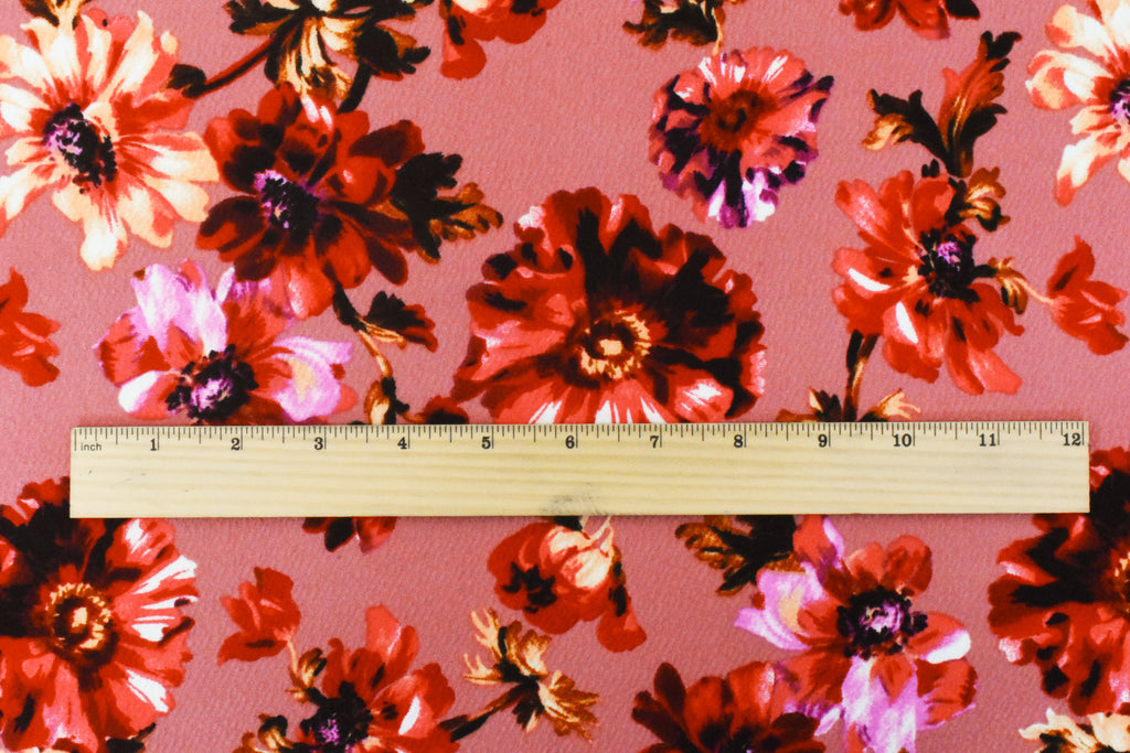 2 YD PC-Pink-Multi Floral Print Liverpool Poly Spandex Crinkle Double Knit Fabric