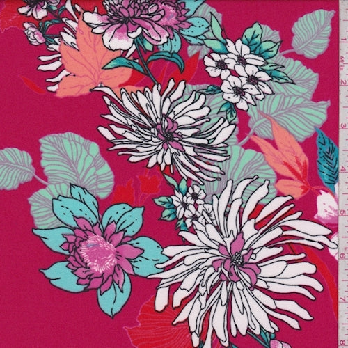 3 3/4 YD PC-Berry Red/White Multi Fringe Floral Cluster Double Brushed Jersey Knit Fabric