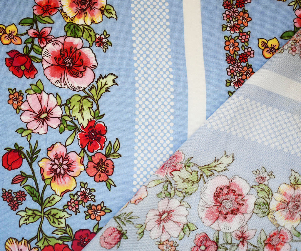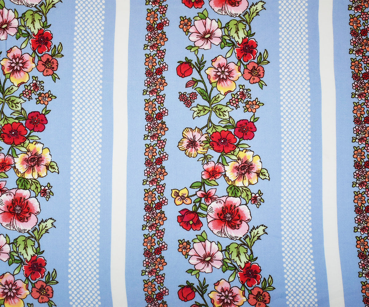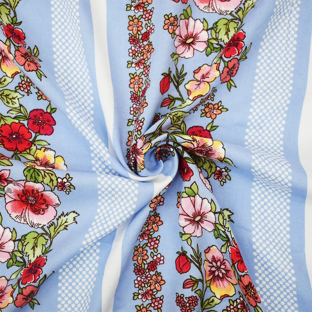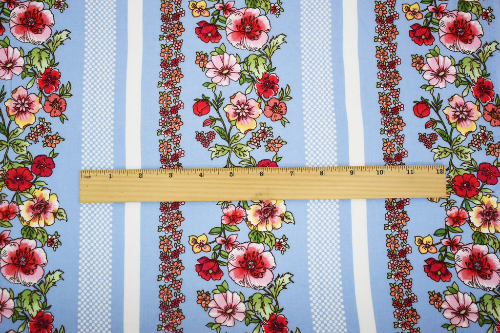 3 3/4 YD PC-Blue-Pink-Multi Rayon Floral Stripe Printed Challis Woven Fabric