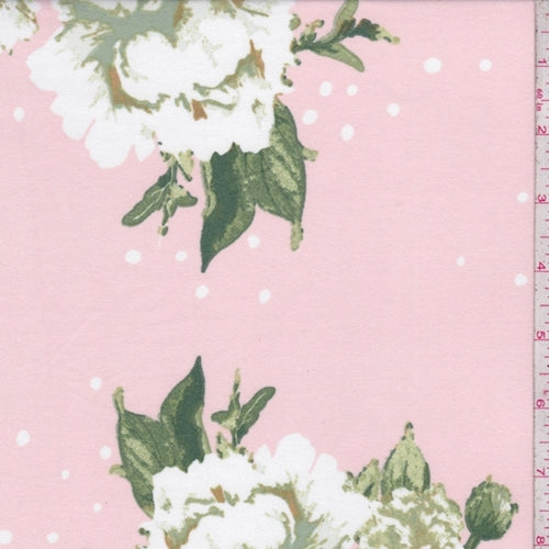 2 5/8 YD PC-Peach Pink/White Floral Double Brushed Jersey Knit Fabric