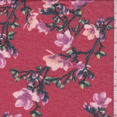 4 1/2 YD PC-Heather Red Floral Sprig Double Brushed French Terry Knit Fabric