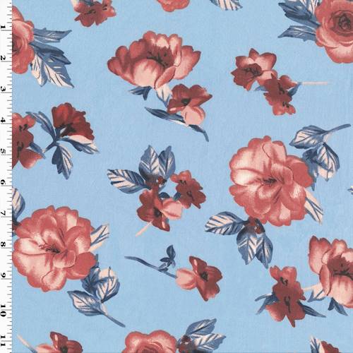 4 YD PC-Dust Red/Blue Floral Print Jersey Knit Fabric