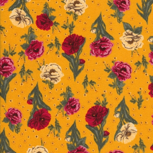 4 YD PC-Gold/Red Poppy Floral Double Brushed Jersey Knit Fabric