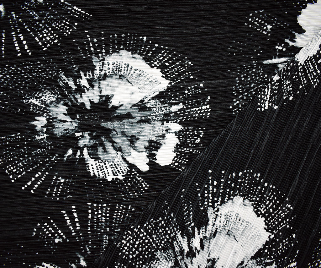 Black-Multi Poly Stretch Spandex Floral Print Pleated Interlock Knit Fabric