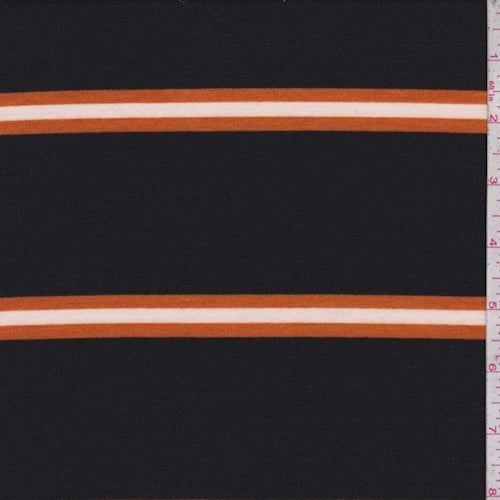 Black/Pumpkin Stripe Double Brushed French Terry Knit Fabric