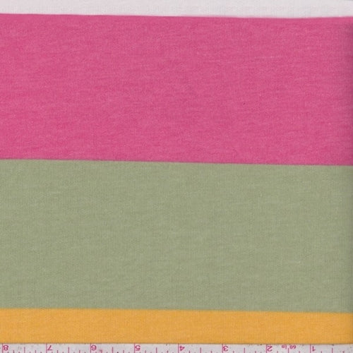 Celery/Pink/Gold Stripe Baby French Terry Knit Fabric