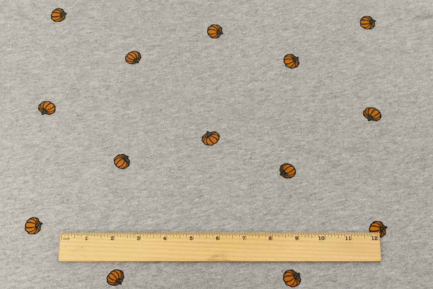 Heather Gray-Orange-Multi Pumpkin Printed Cotton French Terry Knit Fabric
