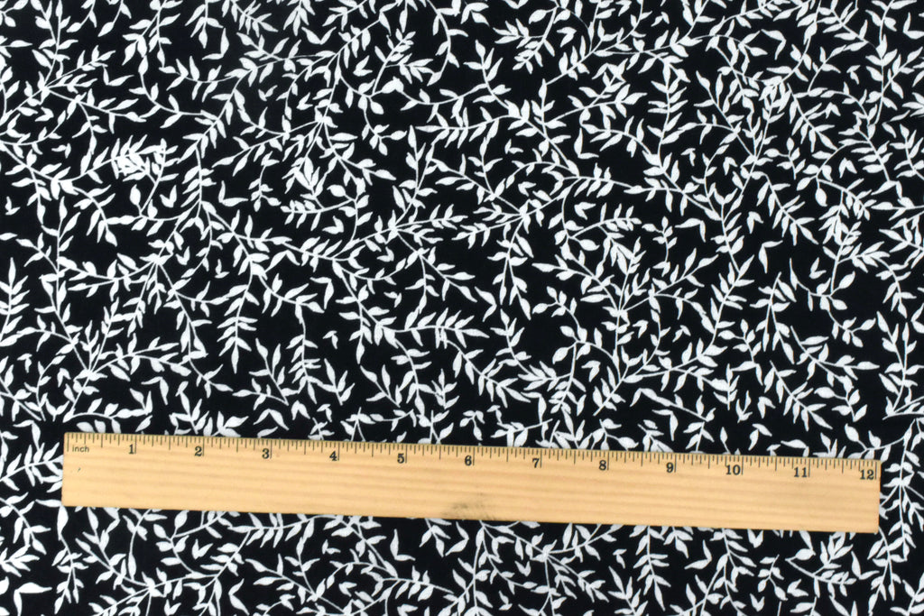 Black-White Famous Designer Leaves Printed Viscose Textured Gauze Fabric