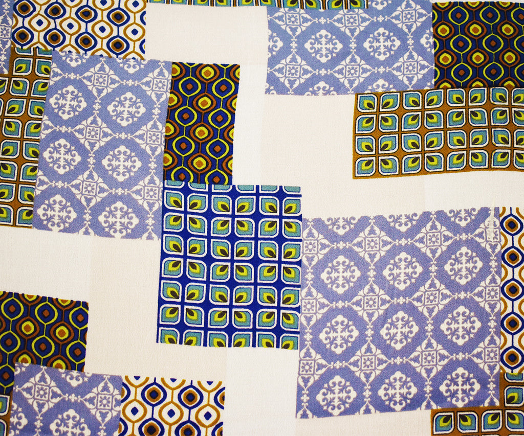 Blue-Green-Multi Cotton Patch Moroccan Pattern Printed Gauze Woven Fabric