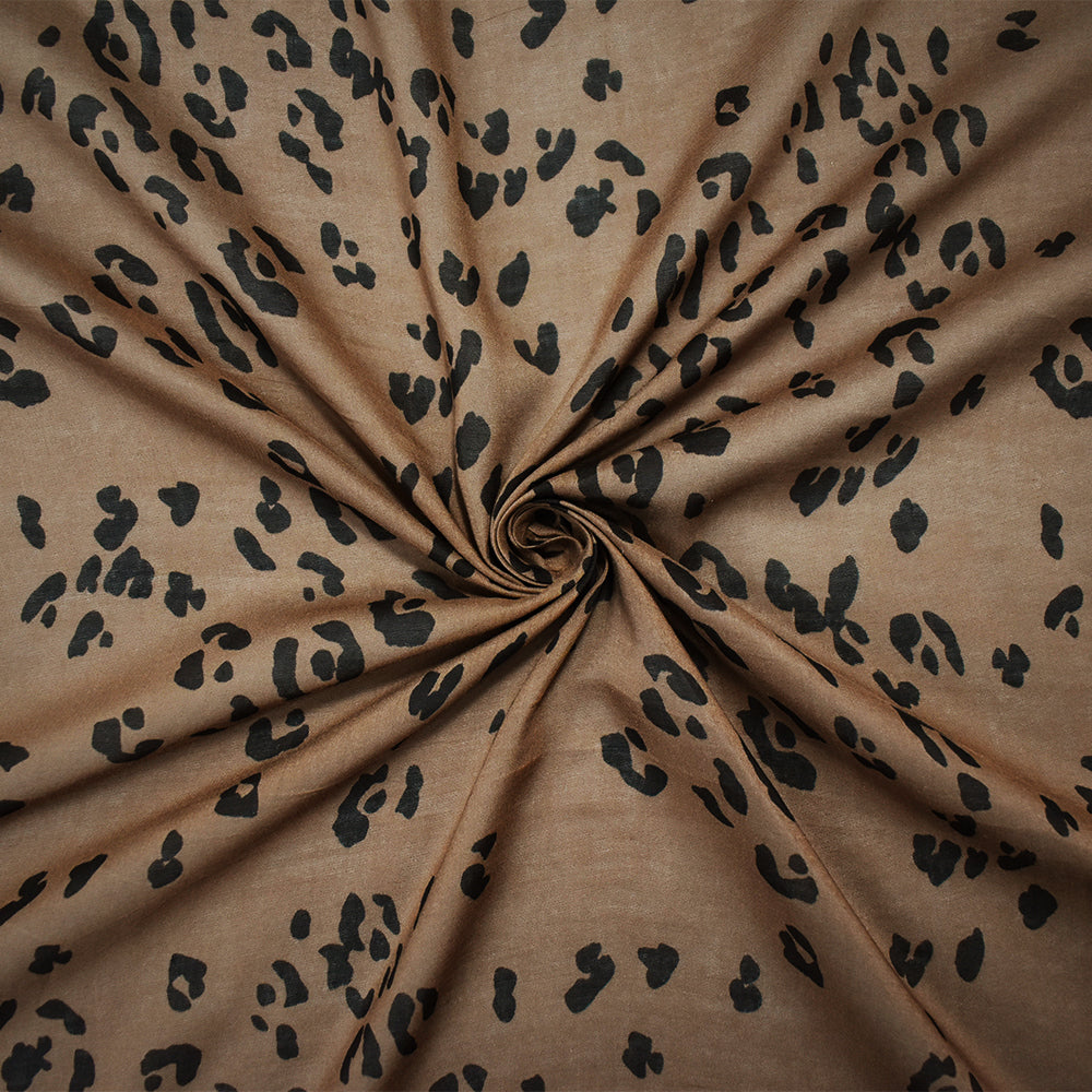 Brown-Black Cotton Famous Maker Leopard Printed Gauze Woven Fabric