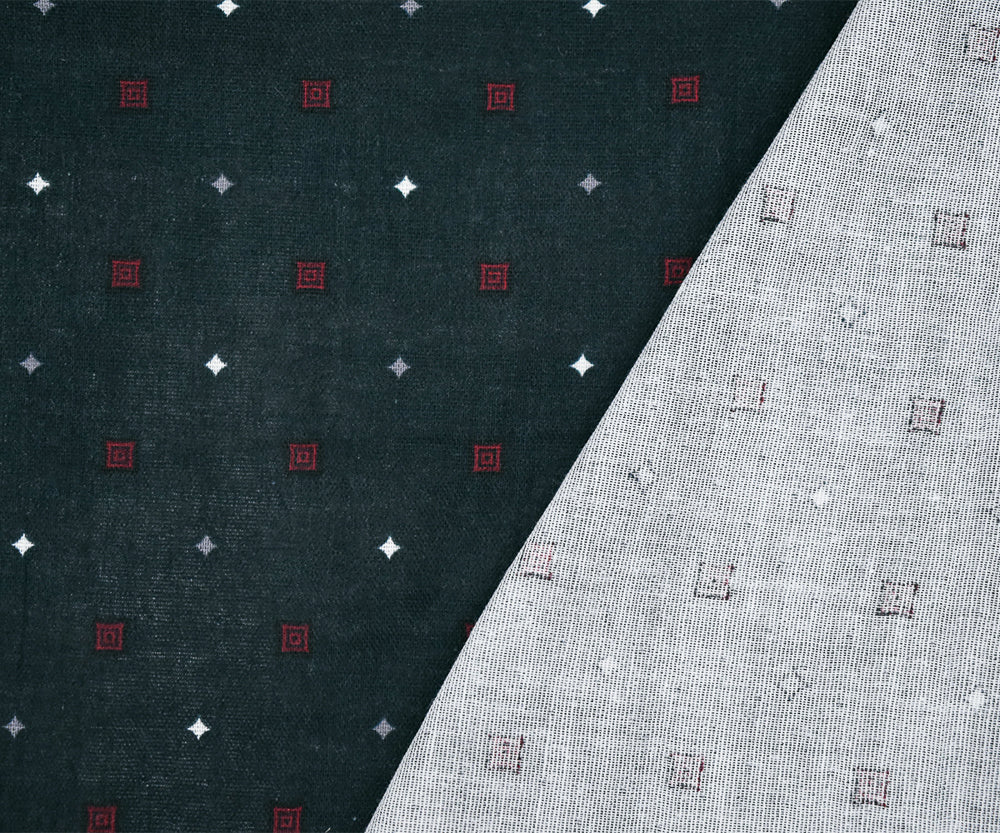 -100% cotton double gauze woven fabric printed with micro star-like shapes and square. Line if needed. Made in Japan.