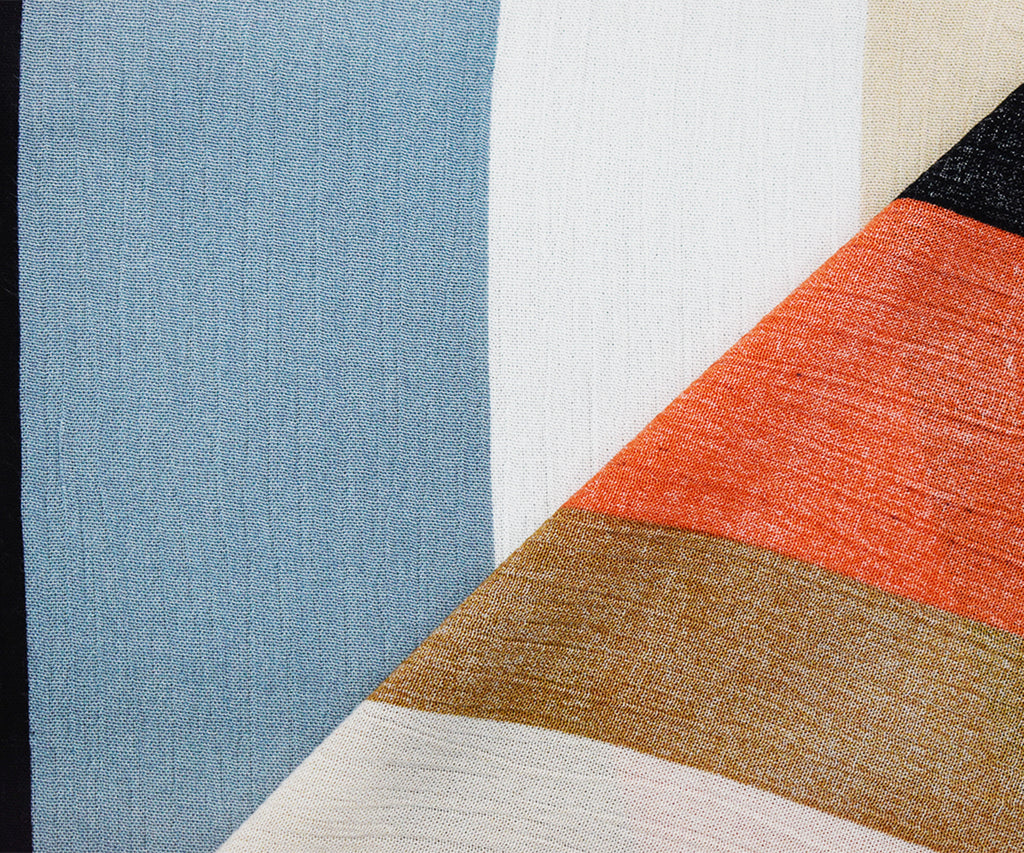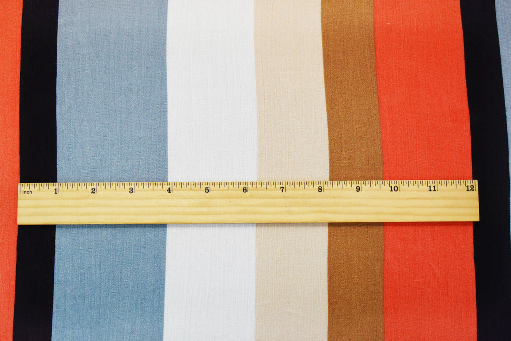 Orange-Gray-Multi Cotton Stripe Printed Crinkled Gauze Woven Fabric
