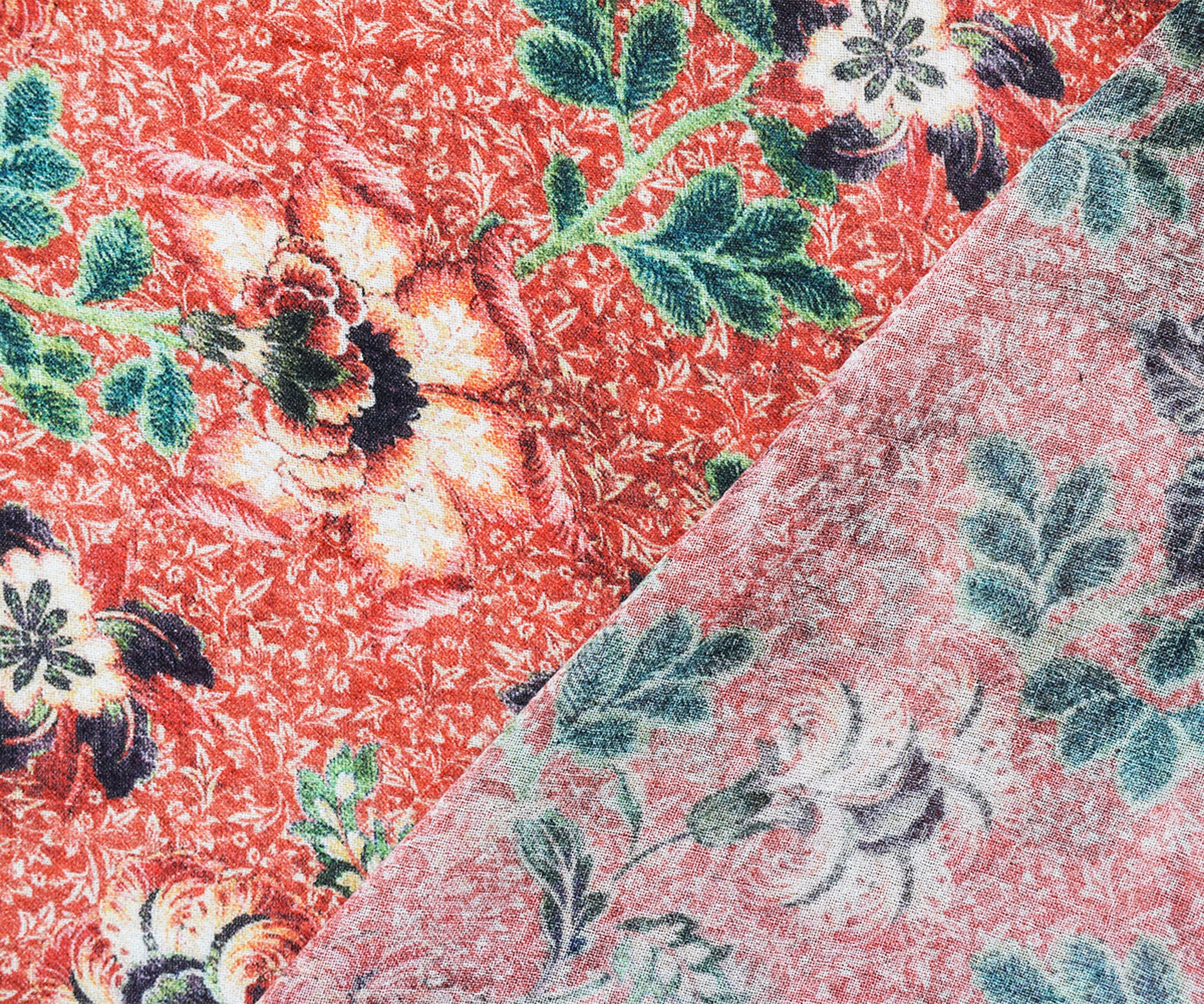 Rust Orange-Green-Multi Cotton Floral Border Printed Gauze Woven Fabric