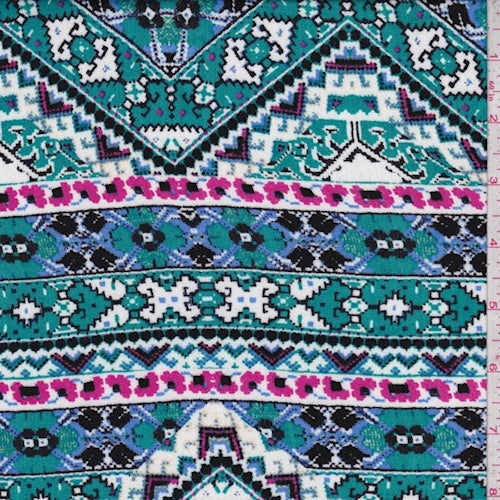 Teal/Periwinkle Mosaic Chevron Crinkled Gauze Fabric