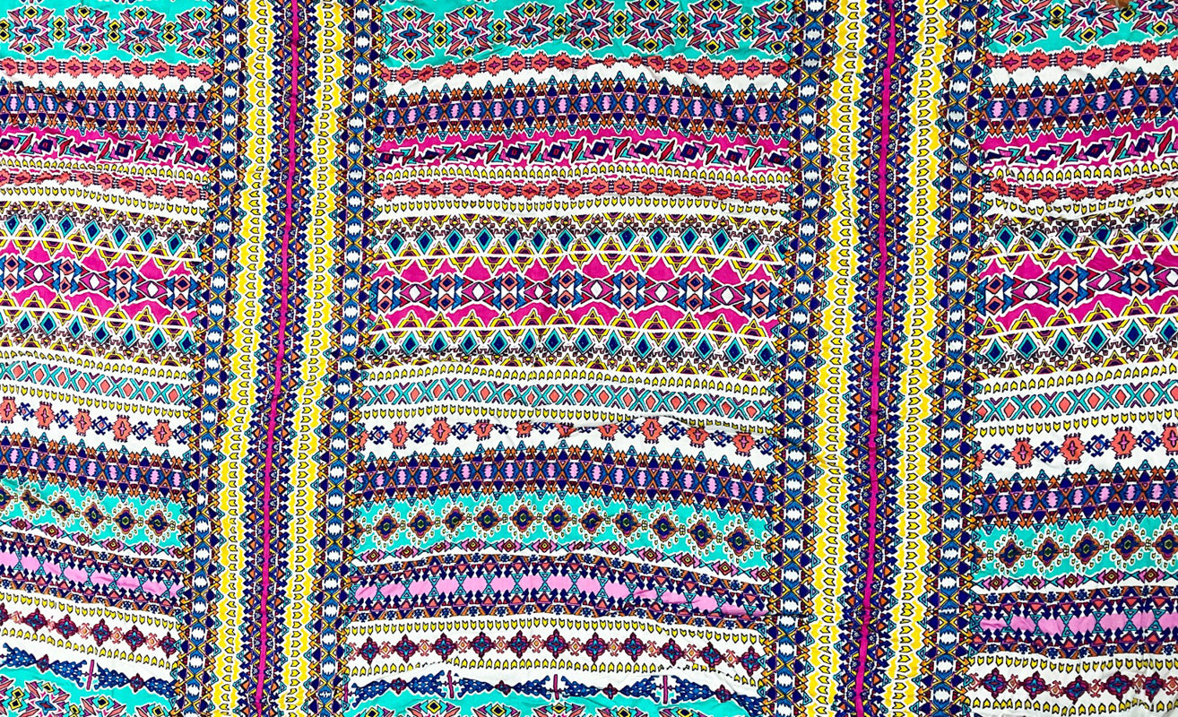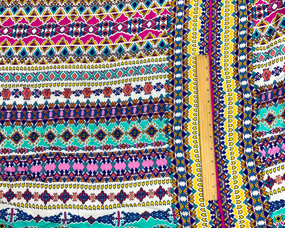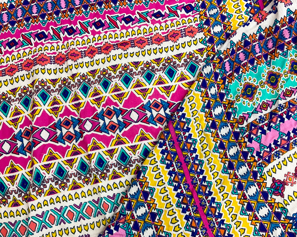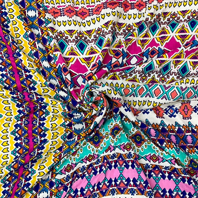 White-Pink-Multi Cotton Aztec Printed Gauze Woven Fabric