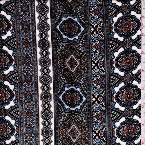 White/Sky/Black Medallion Stripe Crinkled Gauze Fabric