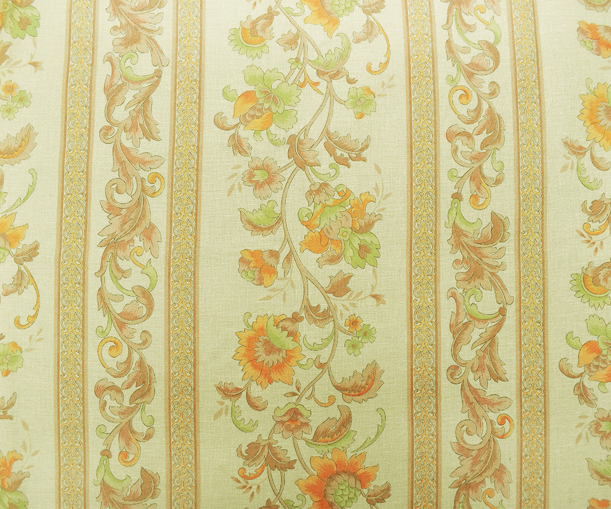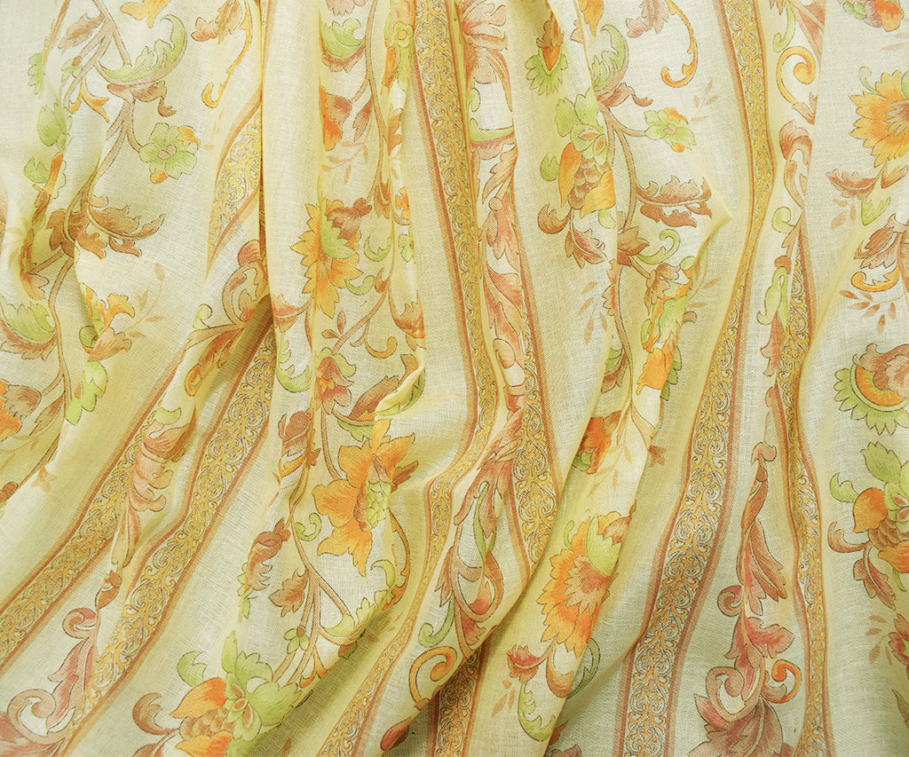 Yellow-Brown-Multi Cotton Floral Vertical Stripe Printed Gauze Woven Fabric