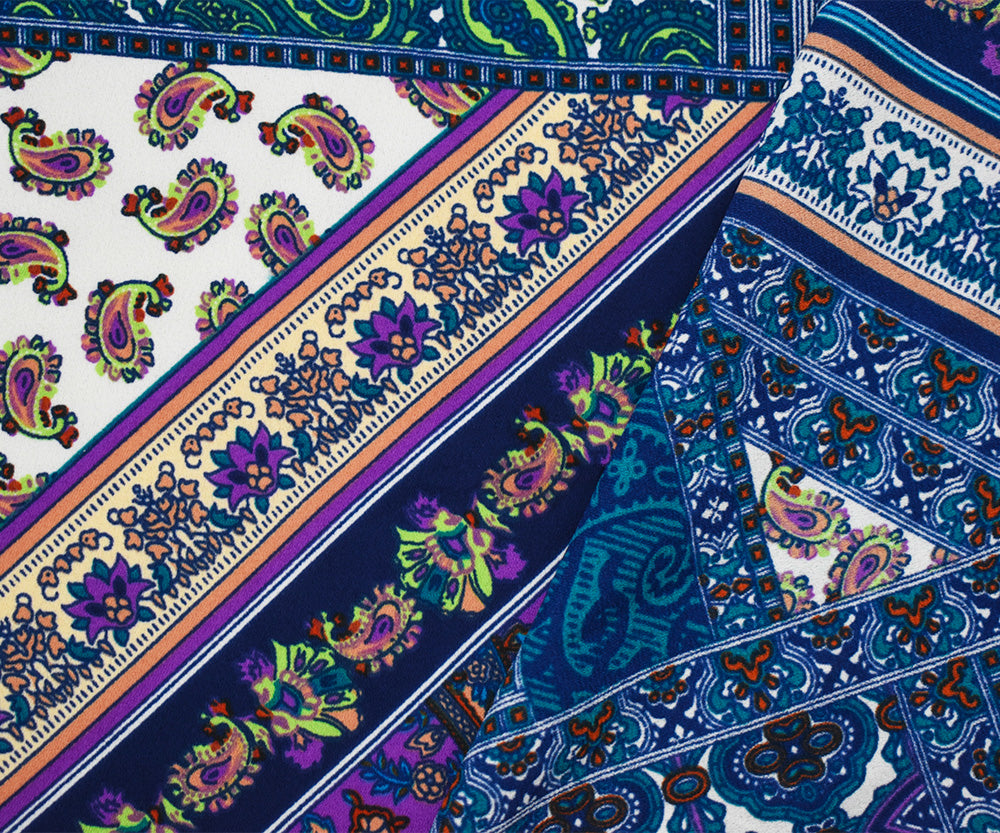 Deep Teal-Blue-Multi Paisley Bandana Printed Momie Georgette Woven Fabric