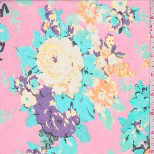 Pink/Teal/Lilac Floral Crepe Georgette Fabric