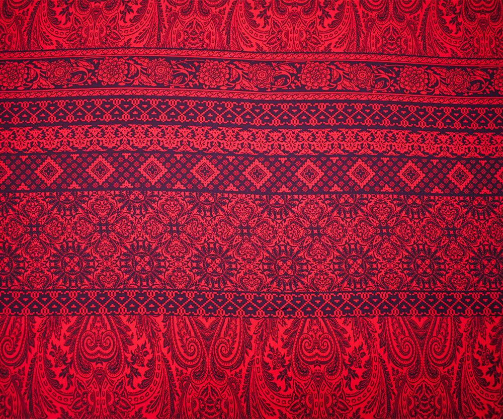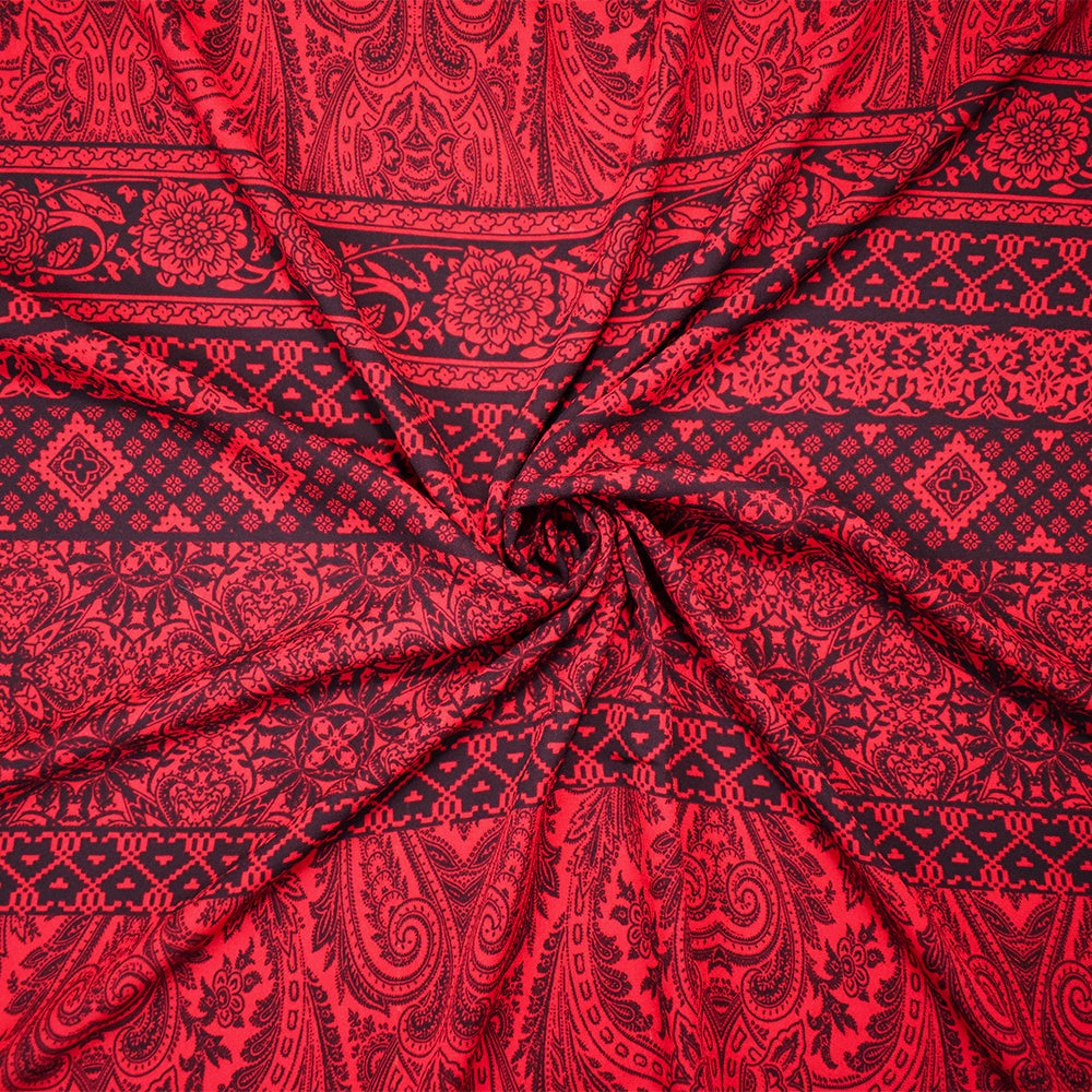 Red-Black Poly Baroque Stripe Printed Georgette Woven Fabric