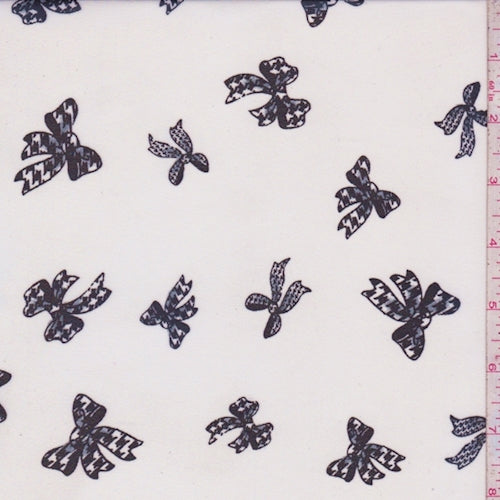 White/Black Bow Georgette Fabric