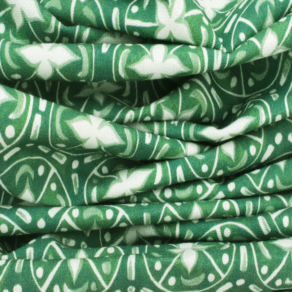 Grass Green-Ivory Abstract Tile Printed Slub Home Decorating Fabric