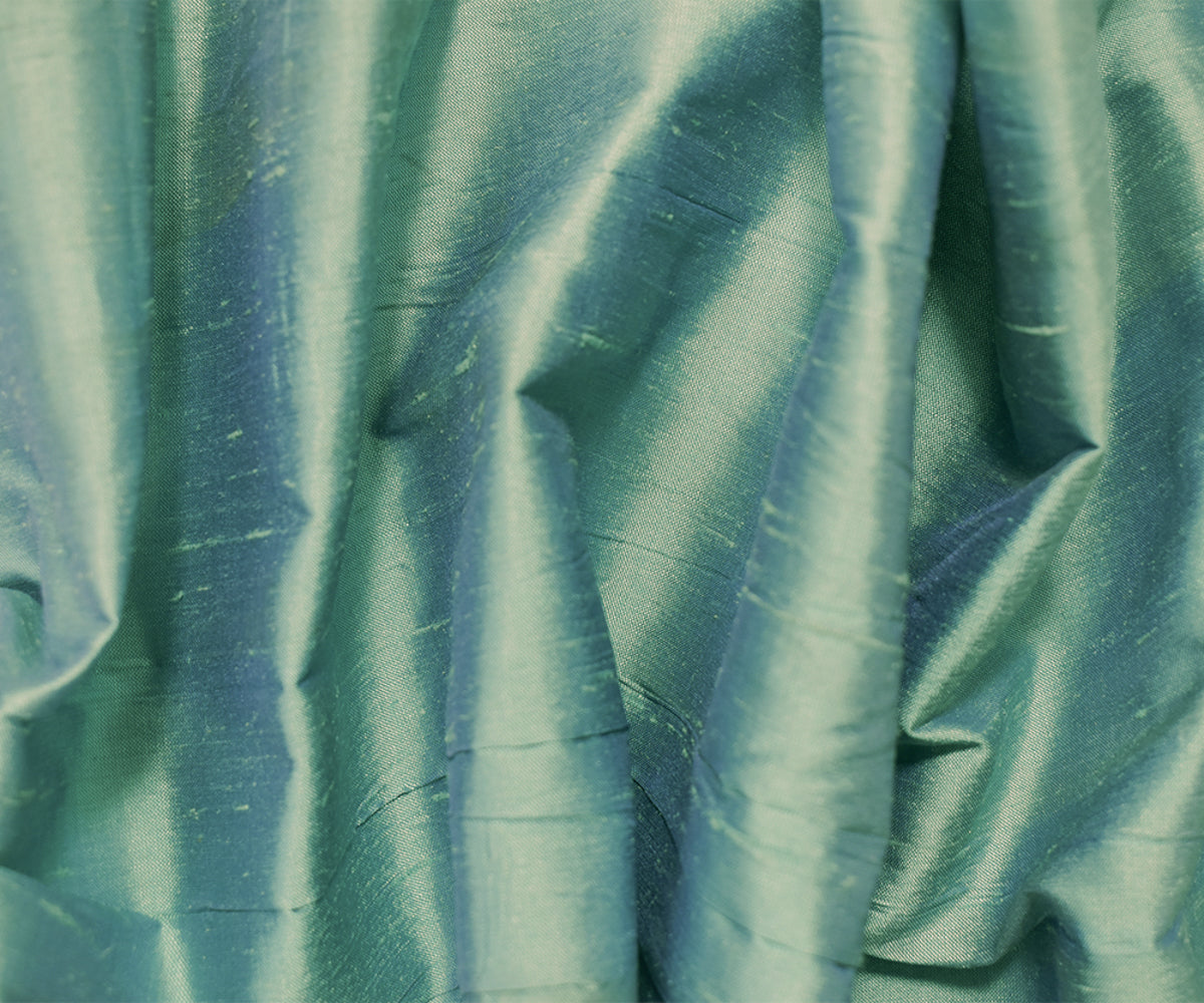 Turquoise-Deep Blue Iridescent Silk Dupioni Woven Fabric