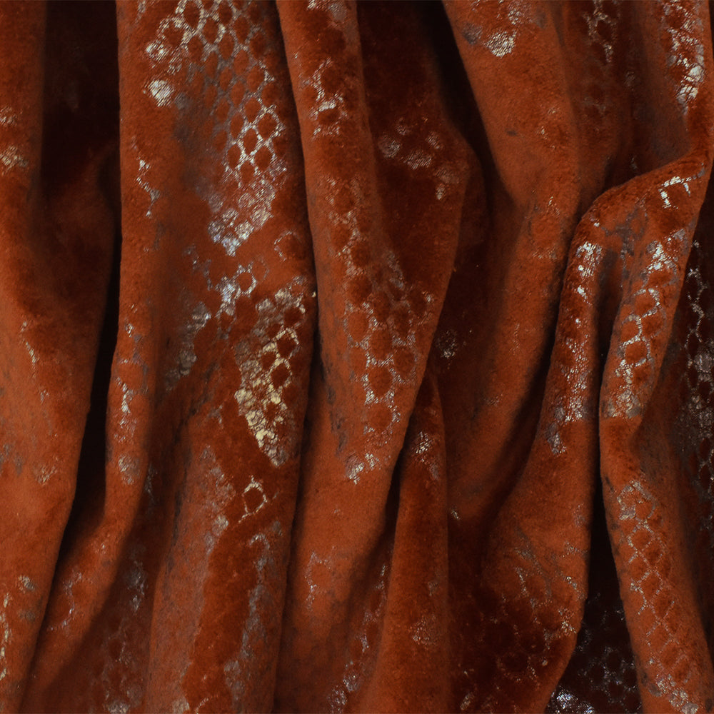 Rust Brown-Gold Snake Foil Print Poly Cotton Velvet Home Decorating Fabric