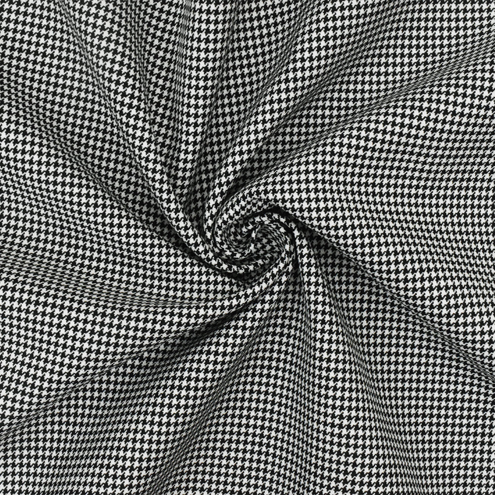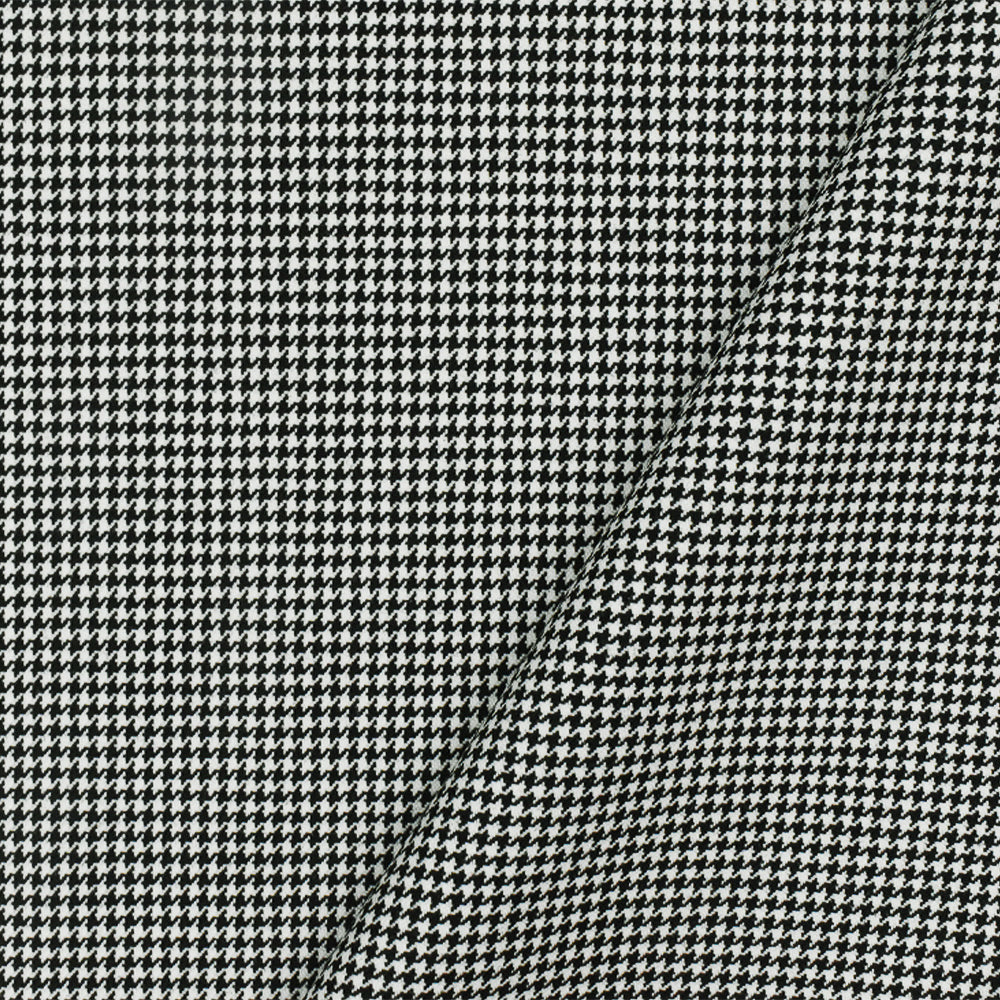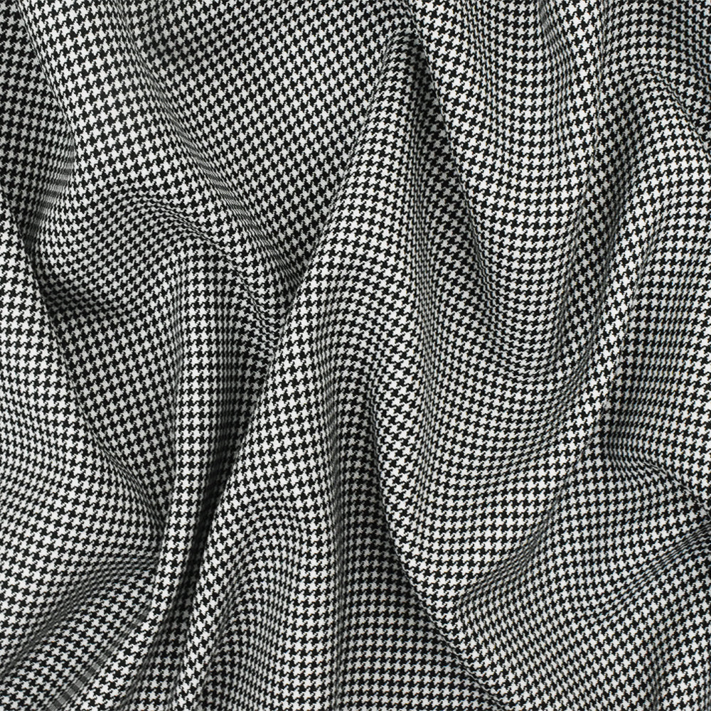 Classic Black-White Mini Houndstooth Wool-Poly Woven Suiting Fabric