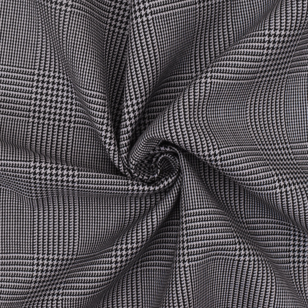 Stone Gray-Black Glen Paid Wool Polyester Twill Woven Suiting Fabric