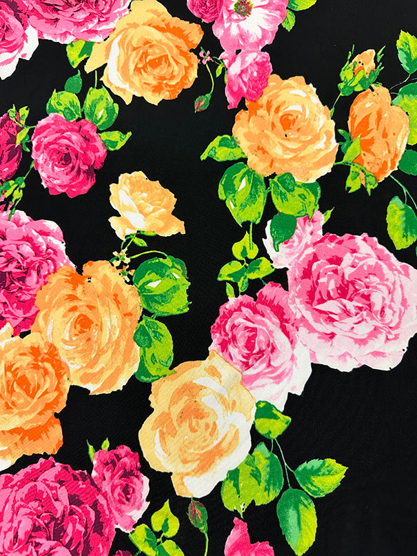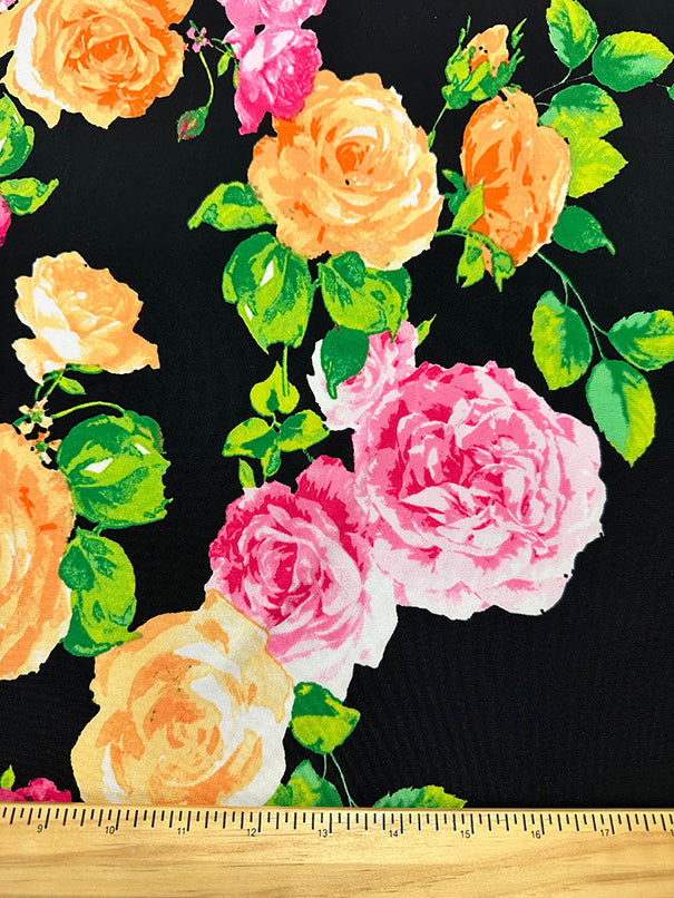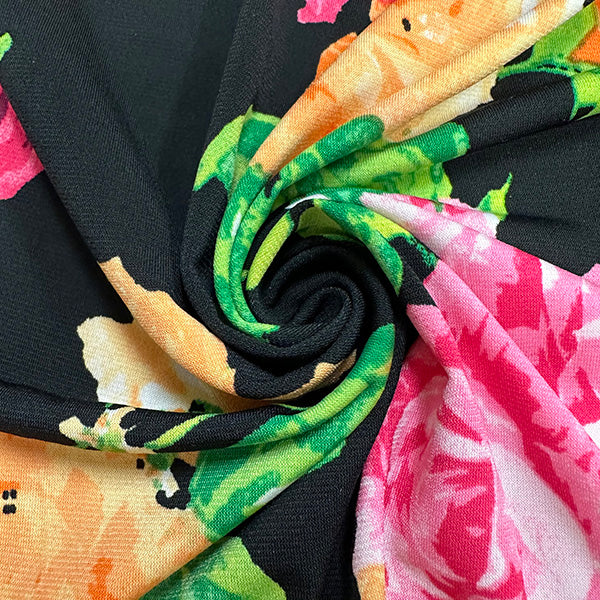 Black Multi Floral Print ITY Jersey Knit Fabric