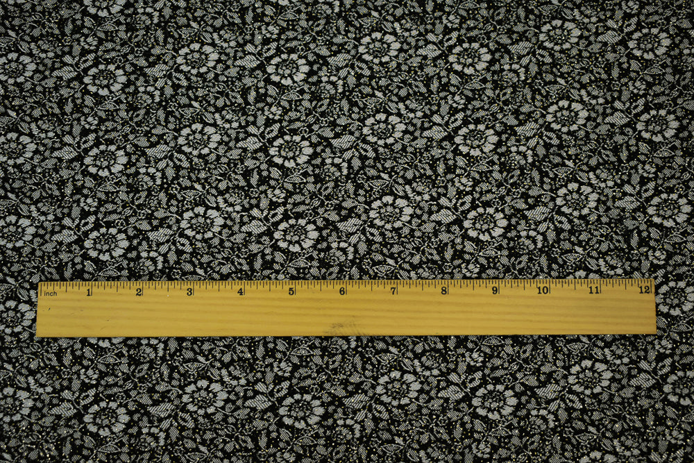 Black-Gray-Gold Rayon Blend Stretch Spandex Floral Bengaline Jacquard Fabric