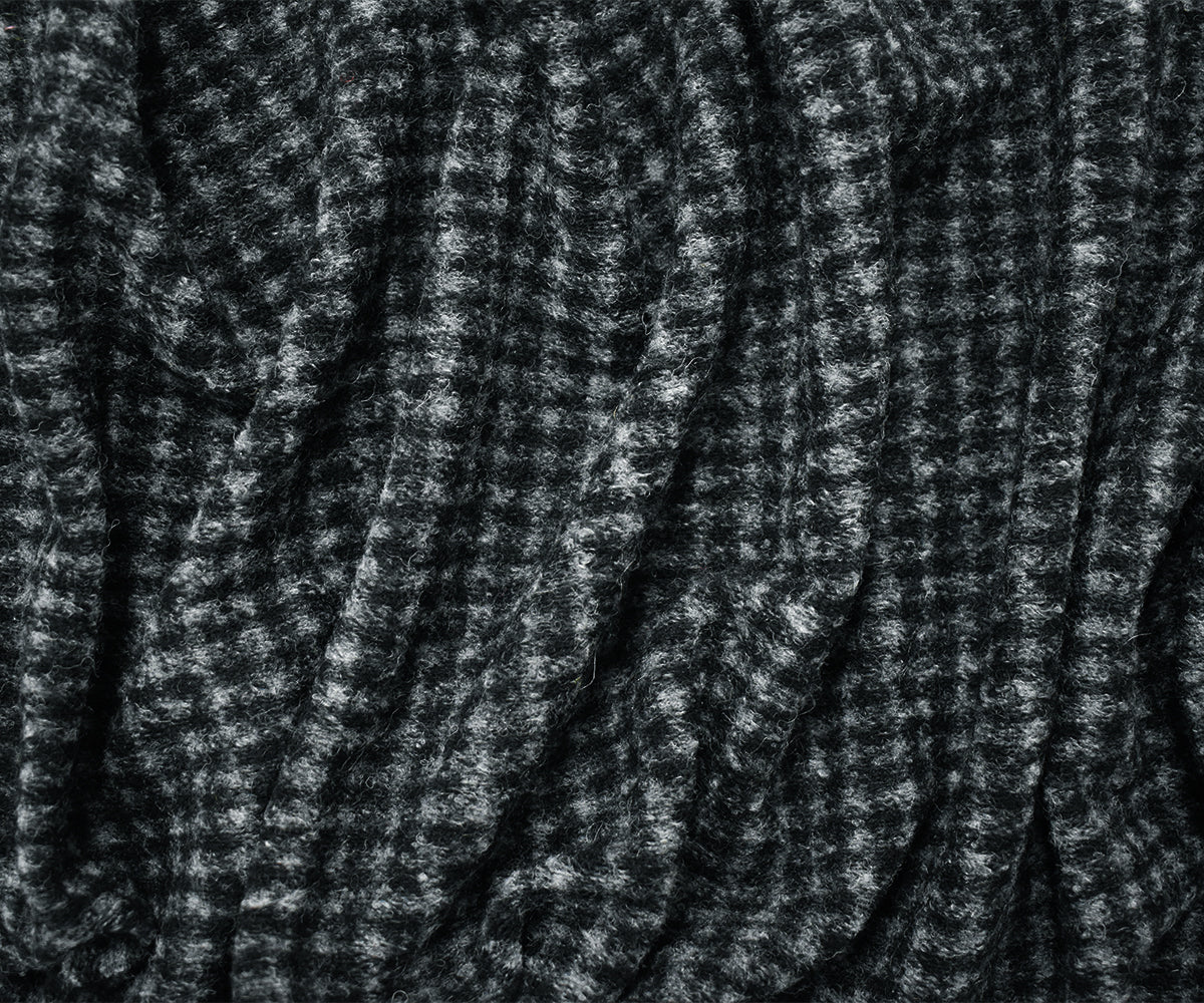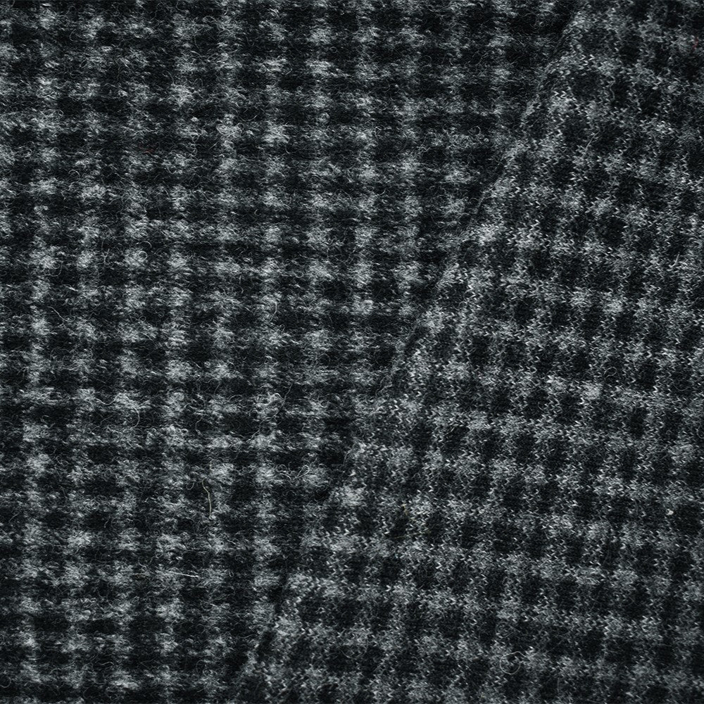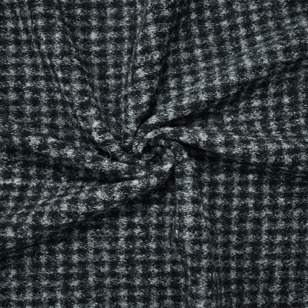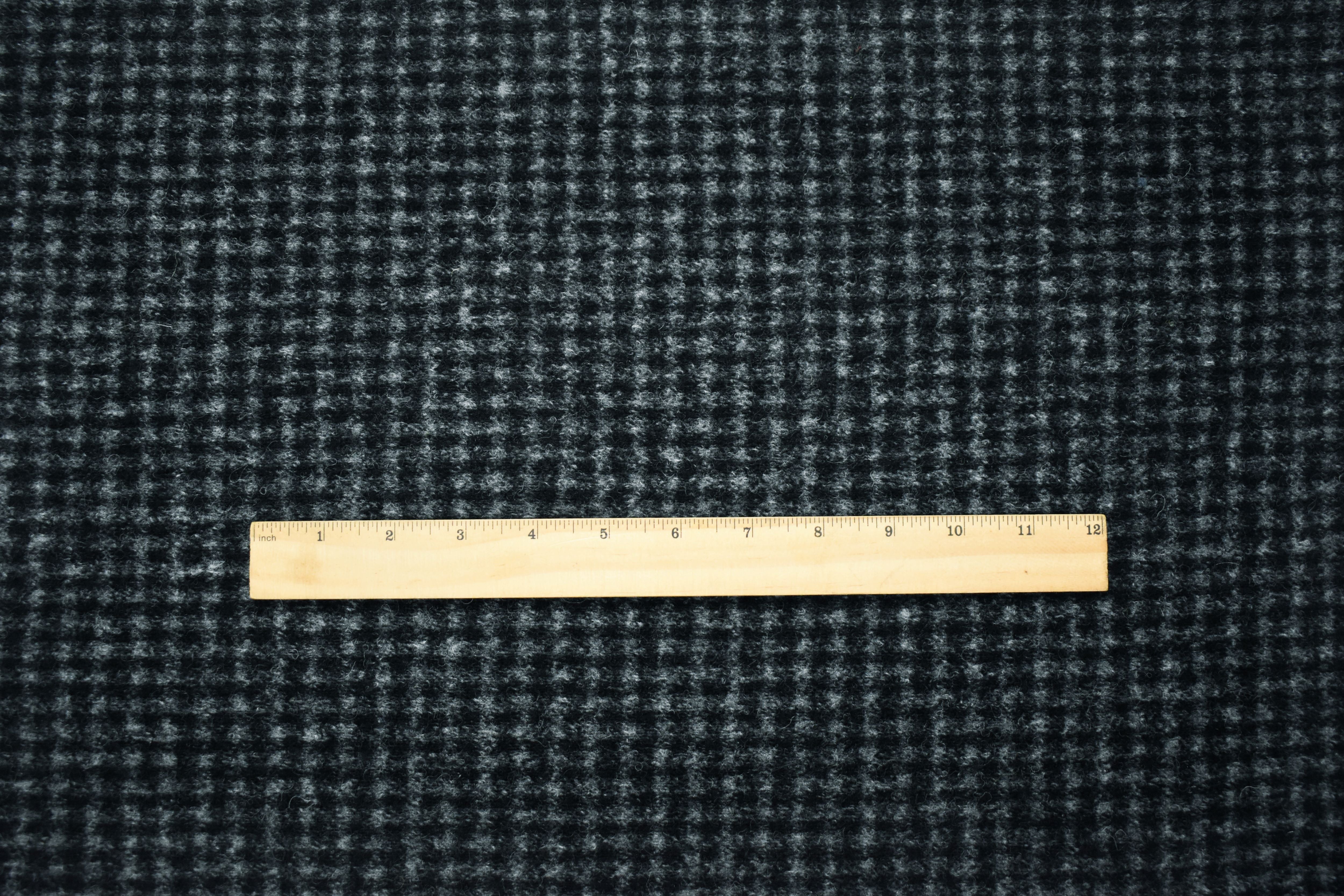 Black-Gray Italian Boiled Wool-Poly Gingham Knit Coating Fabric