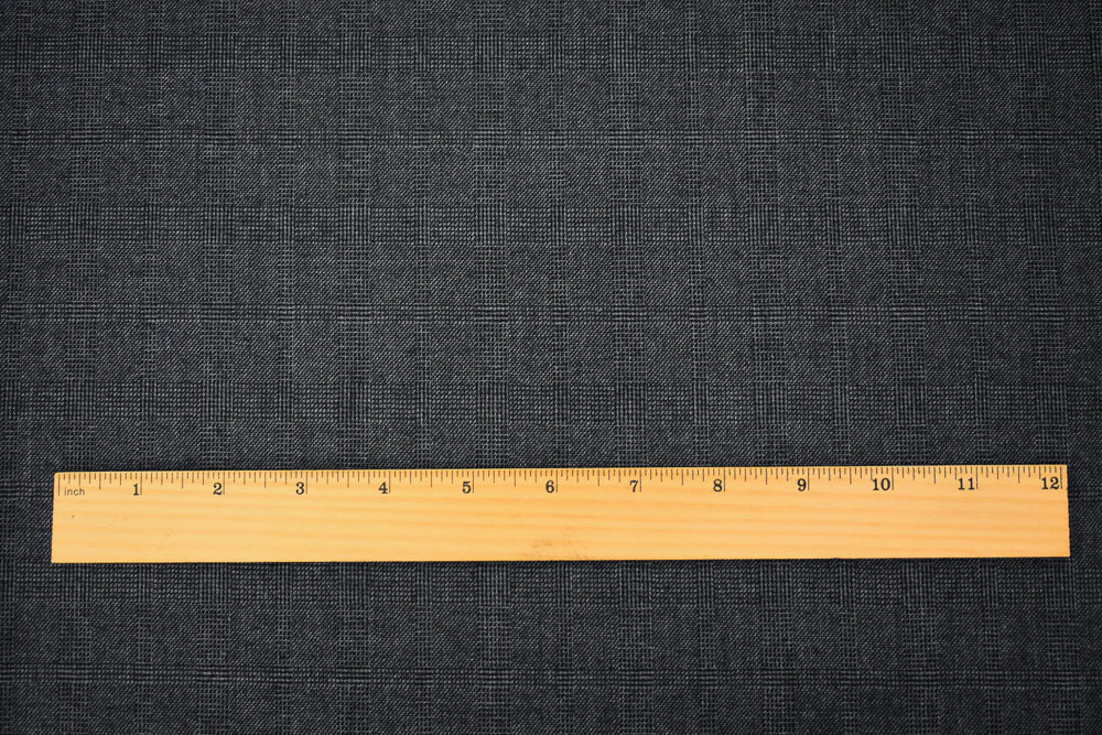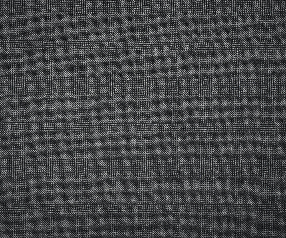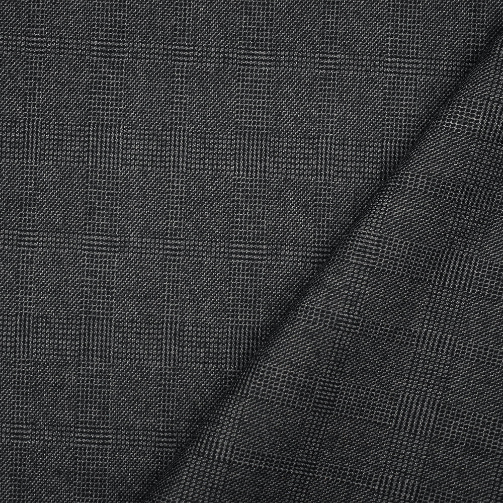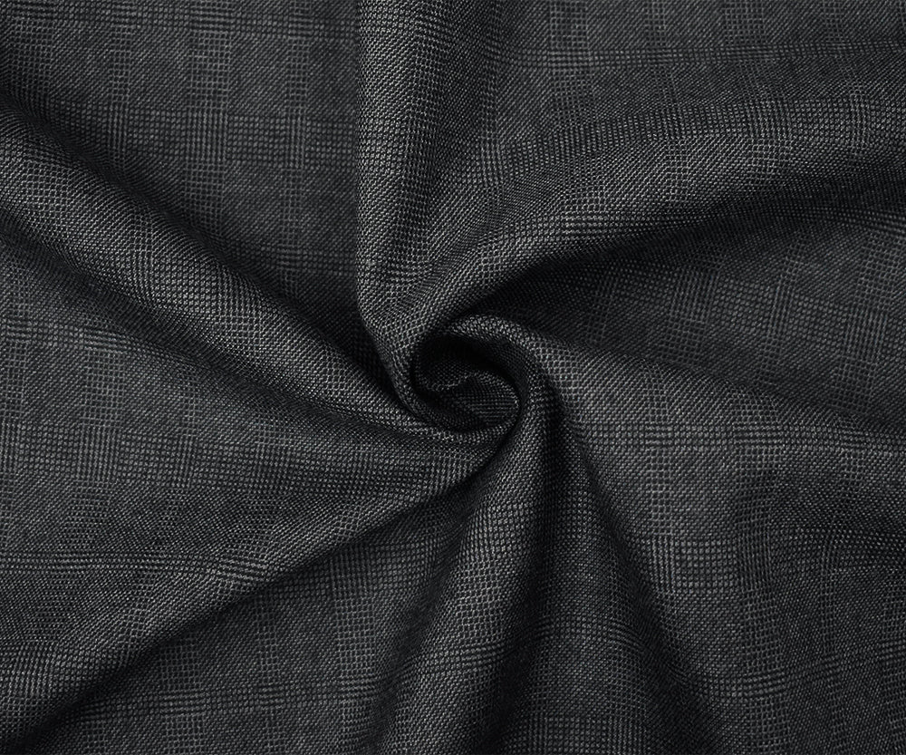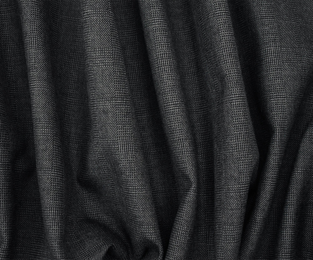 Black-Gray Wool Polyester Check Plaid Dobby Suiting Fabric