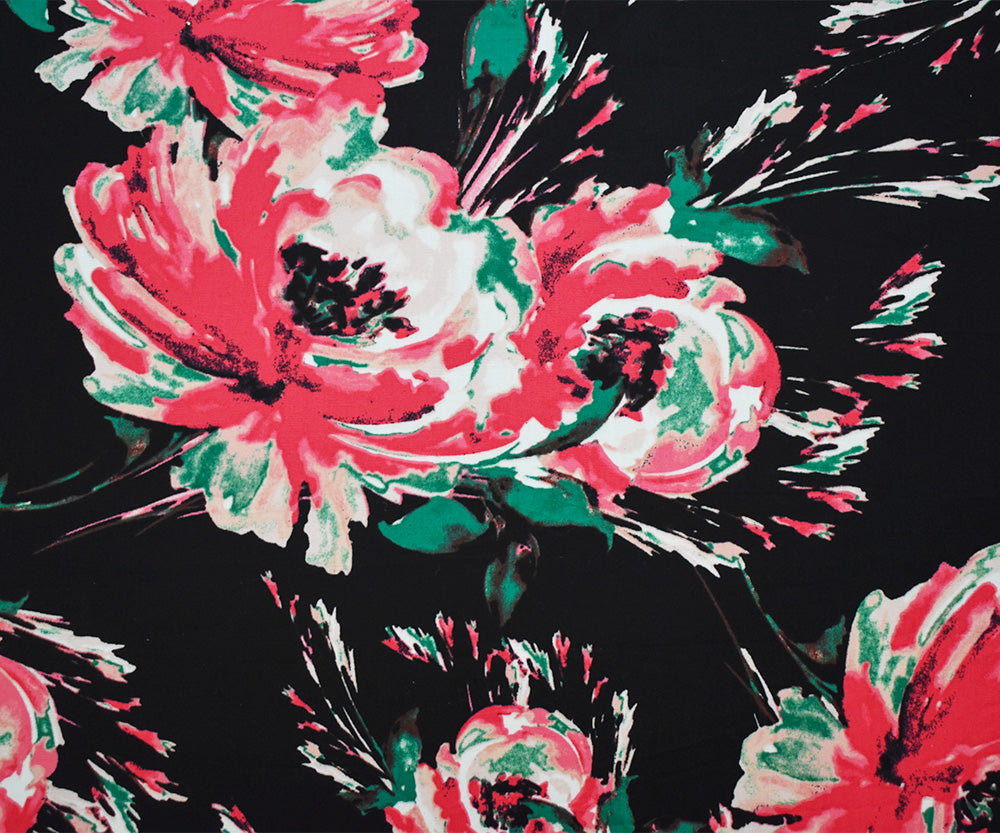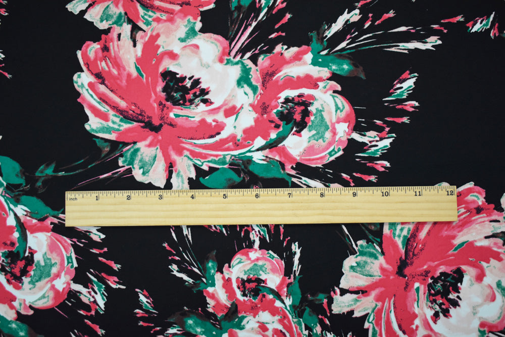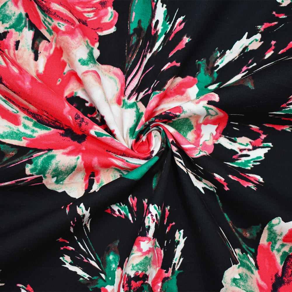 Black-Pink-Multi Cotton Stretch Spandex Floral Print Poplin Woven Fabric