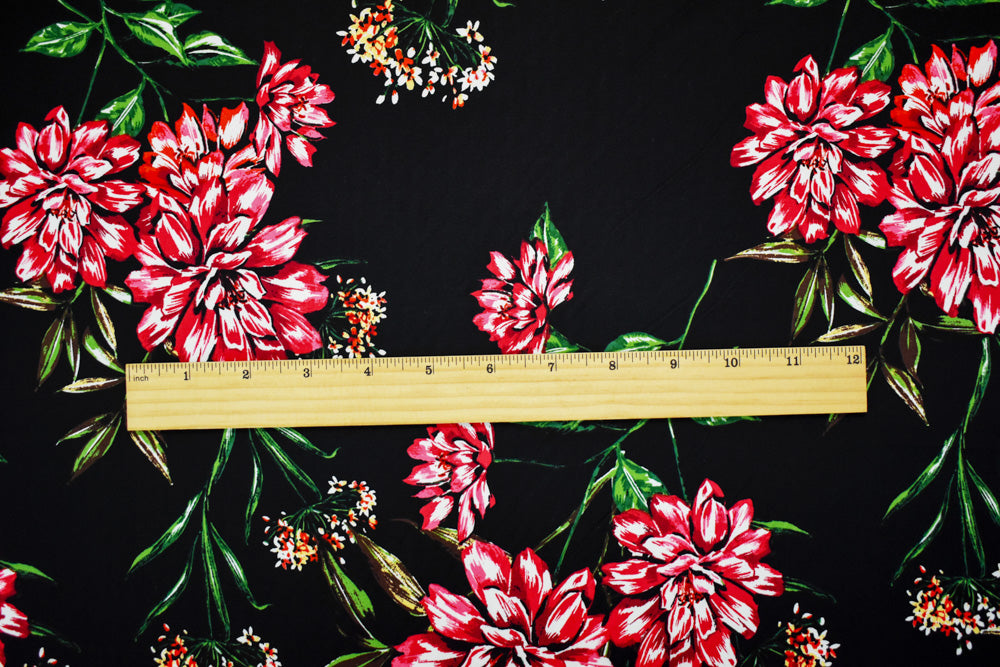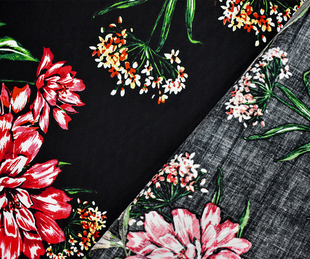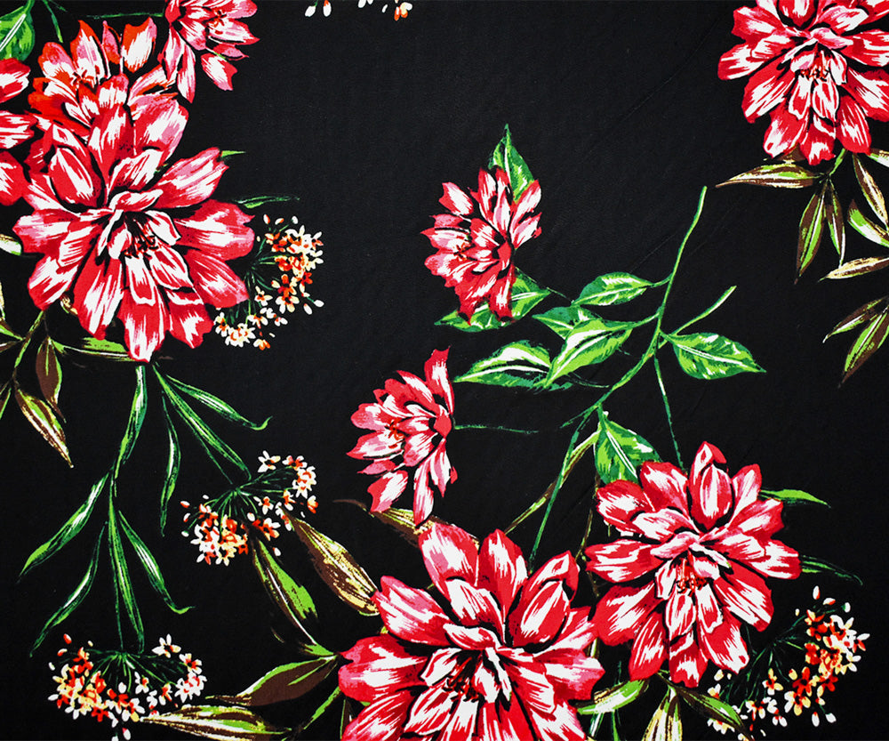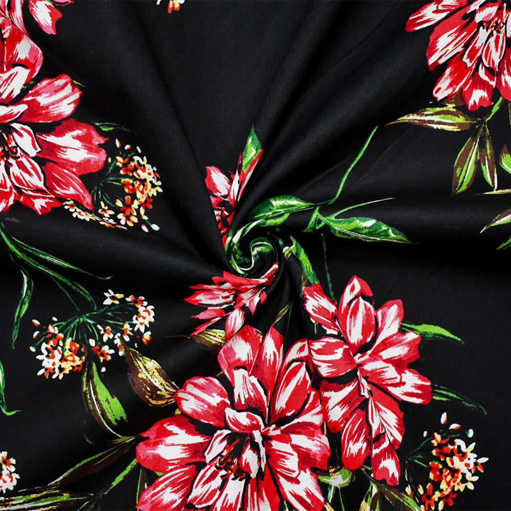 Black-Red-Multi Cotton Stretch Spandex Floral Printed Poplin Woven Fabric