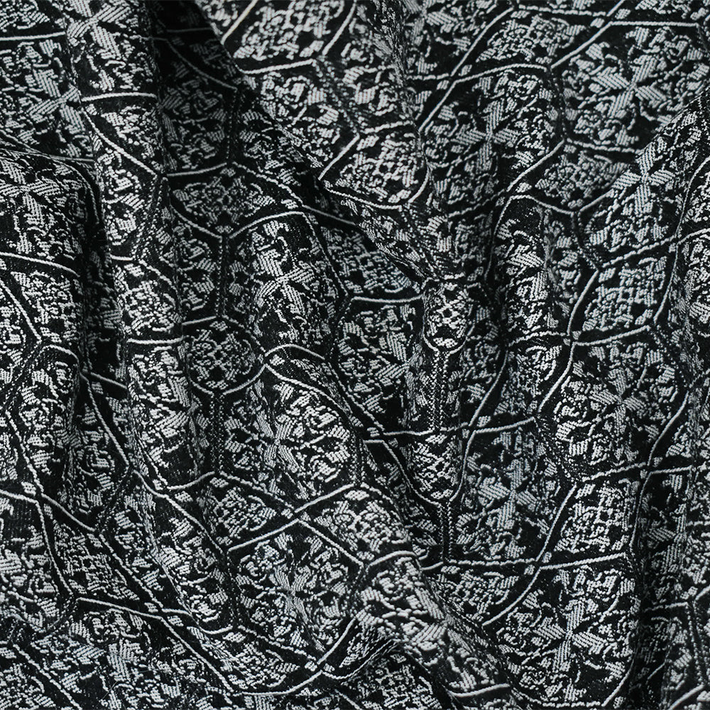 Black-White Rayon Blend Stretch Spandex Tile Bengaline Jacquard Fabric