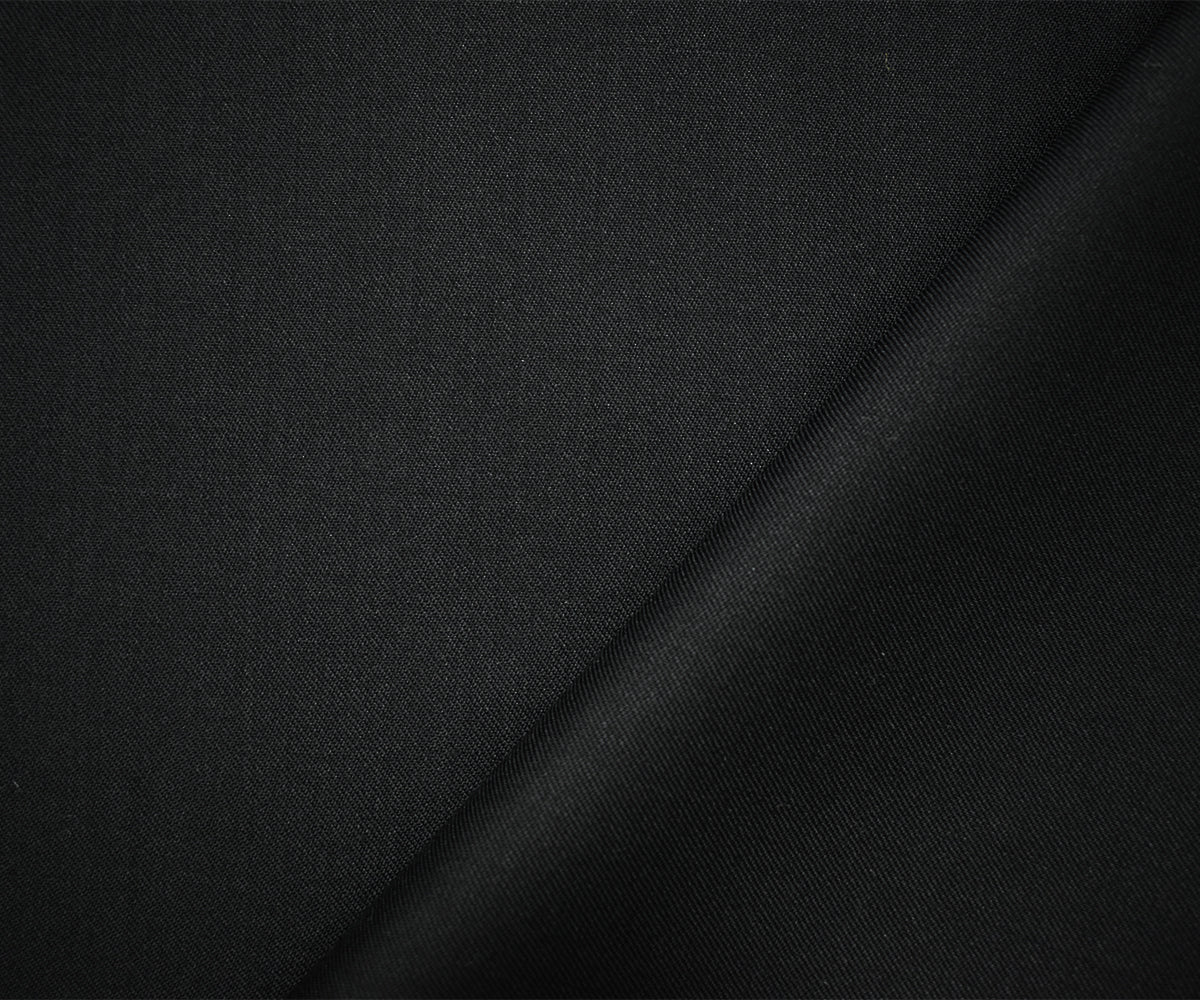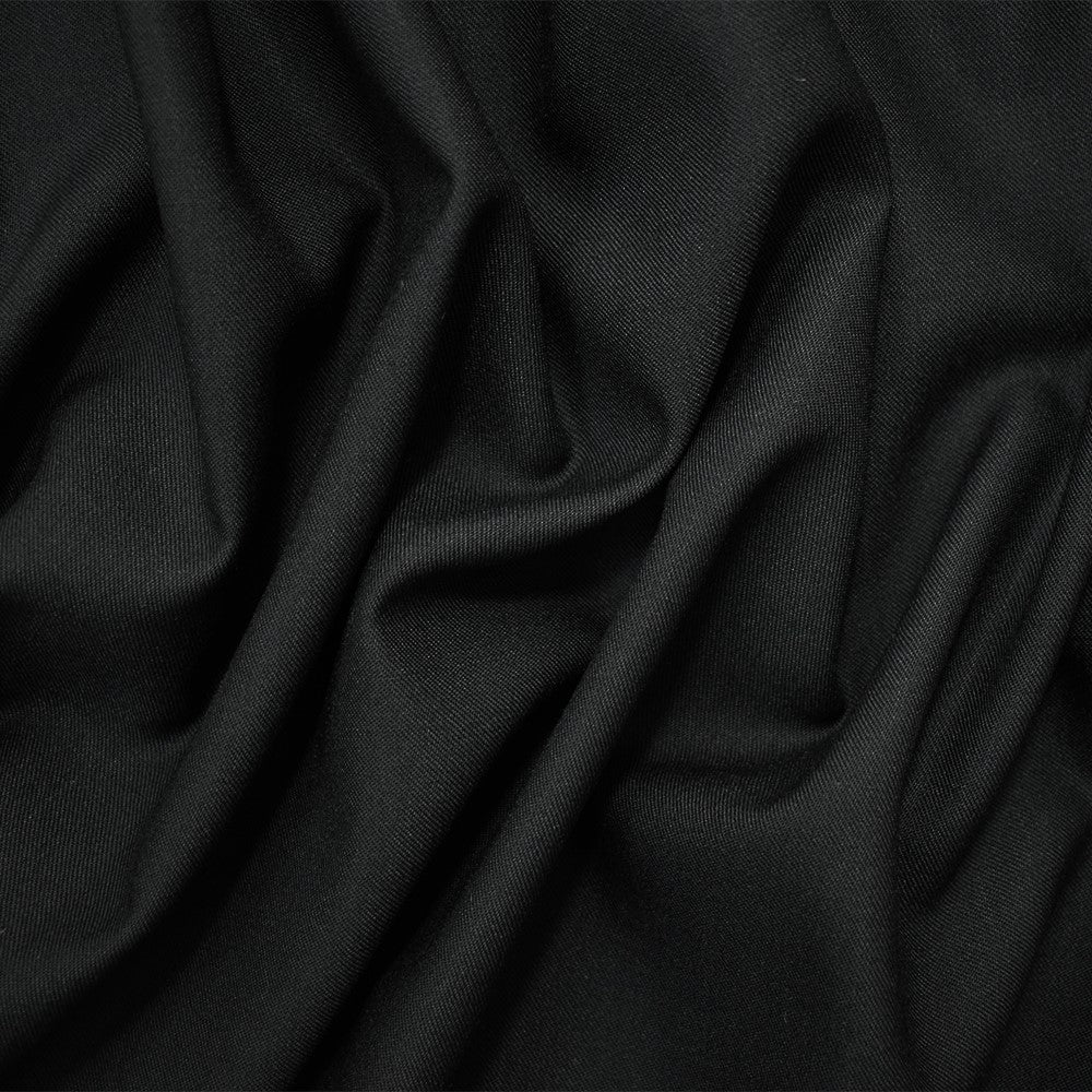 Black Wool-Poly Solid Black Twill Woven Suiting Fabric