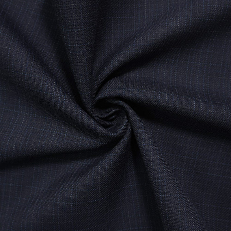 Blue-Beige Wool Poly Check Twill Suiting Fabric