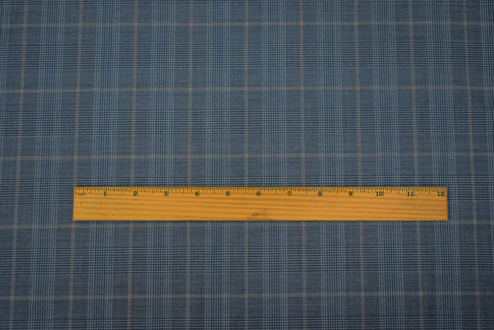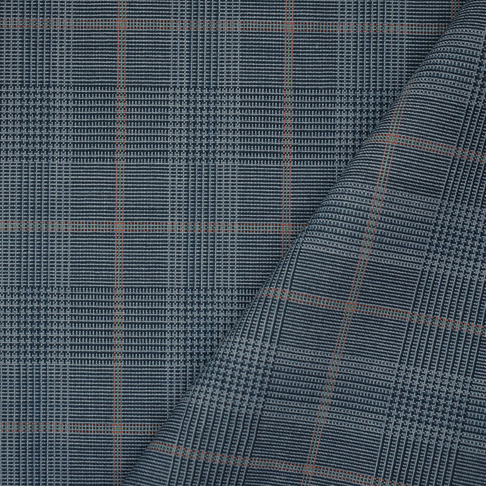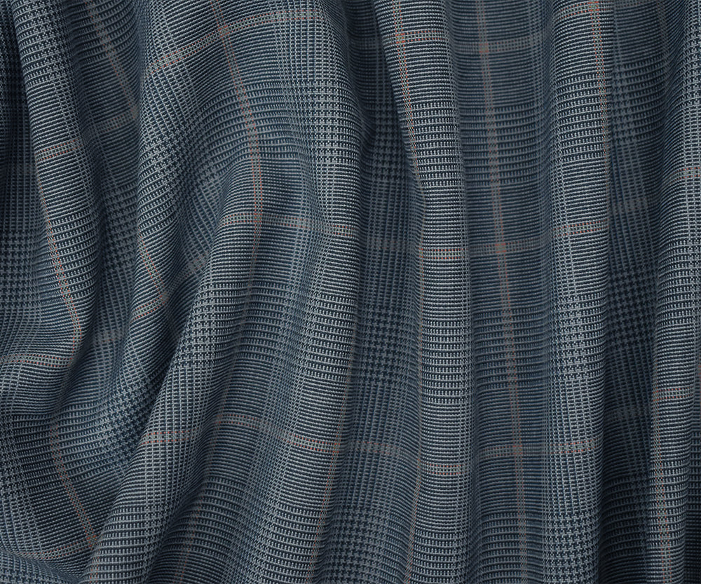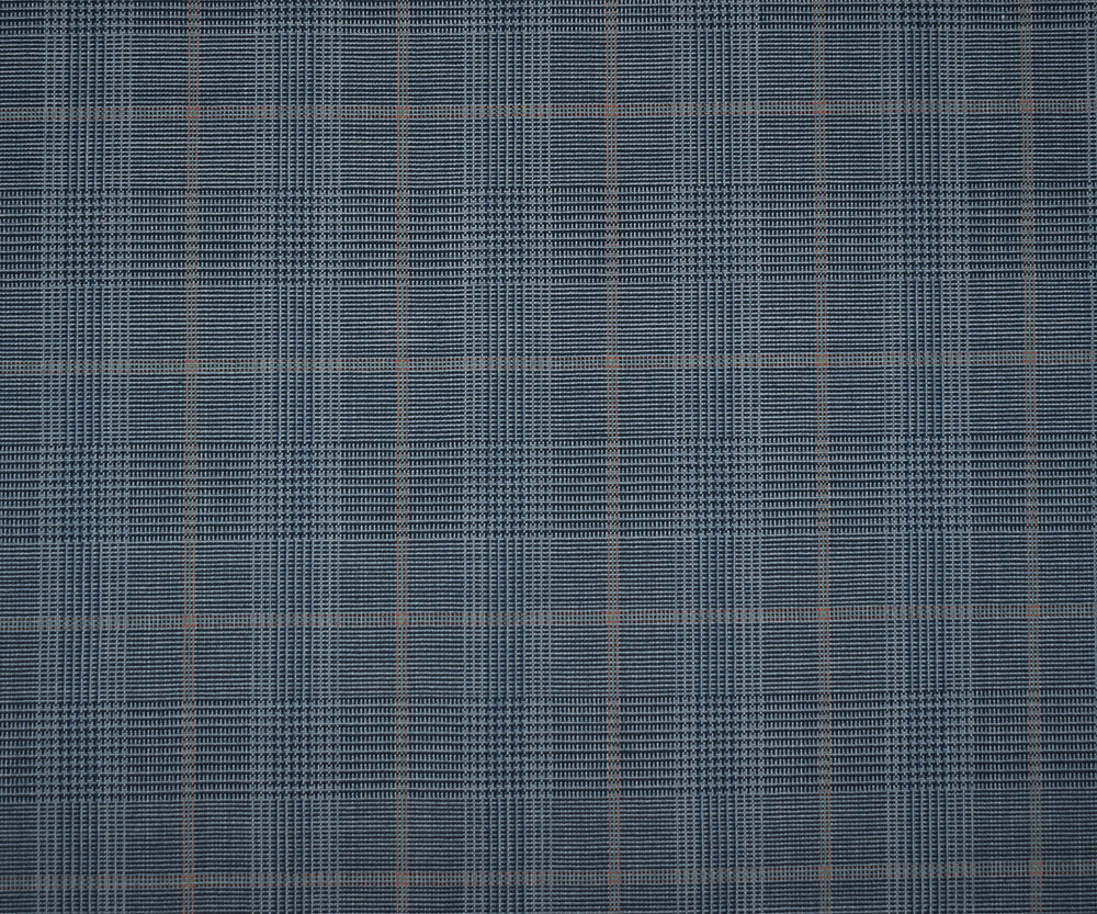 Blue-Orange-Multi Wool Poly Glen Plaid Check Shirting Woven Fabric