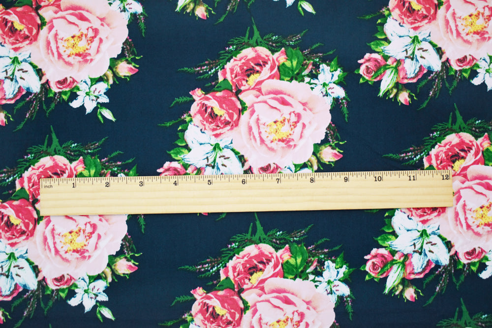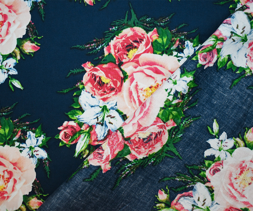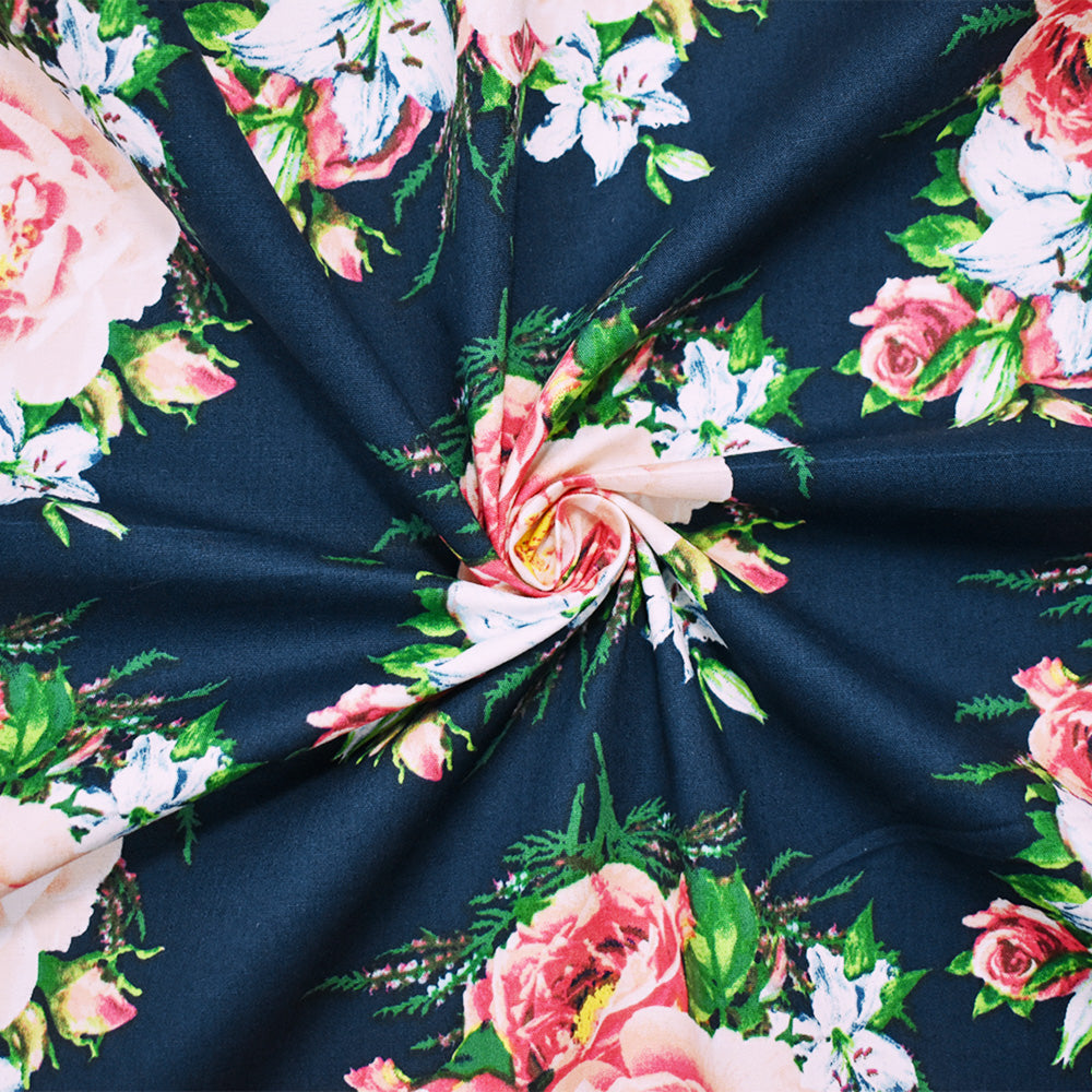 Blue-Pink-Multi Cotton Stretch Spandex Floral Printed Poplin Woven Fabric